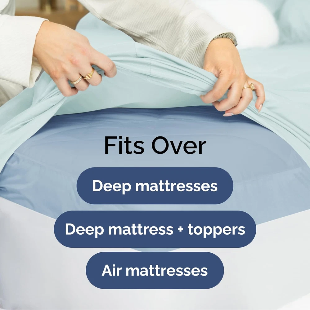 Fast Shipping Great Customer Support Satisfaction Guaranteed DESCRIPTION Shipping Shipping Shipping All domestic packages are shipped for Free (Unless other shipping method was selected during the checkout) Most items ship and arrive much sooner than the estimate delivery date. Usually within 2-3 days from payment. However, we have longer estimates to compensate for the occasional delay or supply chain breakdown. We do not accept P.O. BOXES - PLEASE PROVIDE A PHYSICAL ADDRESS Return Return Return In the event that you would like to return your purchase, we allow returns that are processed within the defined return date (the return date is to be found in the return policy/shipping and handling section) Please contact us for a return authorization and the return shipping address. Payment Payment Payment PayPal is our preferred method of payments it's the quickest, easiest and most secure way to pay for your goods or services online. PayPal offers buyer and seller protection should there be a problem. If you do not have a PayPal account, to get started and buy your first item with us is very easy. Simply click on the 'Buy It Now' button and follow the eBay checkout steps. Select PayPal as the payment method you then will be given the chance to enter your card details in to PayPal's secure checkout in order to pay for your order. Once the payment has been made, you will then be given the opportunity to make your own PayPal account to make paying for your items in the future very easy. Should there be a problem with payment please do let us know. Feedback Feedback Feedback Customer satisfaction is very important to us. If you have any problem with your order,please contact us and we will do our best to make you satisfied, please do not leave a negative feedback before we resolve your problem. We guarantee that your issue will be solved quickly. As long as you are happy with your purchase of , please leave us a positive feedback. Your feedback is very important to us it affects our search placement on eBay. We will leave a positive feedback for you in return automatically once we receive your feedback. Contact Us Contact Us Contact Us If you have any queries, please contact us via ebay. We usually respond within 24 hours on weekdays. Thank you for visiting our ebay store! EXTRA DEEP POCKET SPLIT KING SHEETS / EXTRA DEEP FITTED SPLIT KING SHEETS: These bed sheets are for very deep pocket mattresses. They fit any mattress with pockets that are 18, 20, 21, 22 and 24 inches deep. There's stretchable elastic around the extra deep fitted sheet which stretches for a nice tug around your mattress. Perfect for extra tall & large mattresses. Rest assured these oversized sheets will stay on tight & stay in place! 7 PIECE SHEET SET: This bed sheet set comes with 4 pillowcases total all with beautiful decorative embroidery design on each pillow case. The pillow cases have enclosure designs. This bedding set will accommodate your extra thick mattress perfectly. GREAT FOR DOUBLE PILLOW TOP MATTRESS: These bed sheets are perfect for mattresses with a 3 inch or 4 inch topper on top, memory foam toppers, big mattress pads, pillow tops, foam toppers, big foam toppers, pillow top mattresses and memory foam. These sheets will not come off. MICROFIBER: These are the softest type of microfiber bed sheets we have created. Super soft with a light feel. Not crisp like cotton. If you're accustomed to cotton sheets and you've never tried microfiber sheets we recommend you give these a try. They're even softer than cotton! DIMENSIONS & SIZES: Flat Sheet 113 wide and 102 long. Fitted sheet 39 wide and 80 long with 21 inch pockets (has elastic so it can stretch). All four pillow cases are oversized 20 x 40 inch. Extra Deep Split King Sheet Set - 7 Piece Cooling Luxury Ice Blue Sheets Click here to see description Fast Shipping Great Customer Support Satisfaction Guaranteed DESCRIPTION Shipping All domestic packages are shipped for Free (Unless other shipping method was selected during the checkout) We ship within two business days of payment, usually sooner Standard FREE shipping takes between 3-5 business days Expedited shipping takes between 2-3 business days Overnight shipping takes between 1-2 business days We do not accept P.O. BOXES - PLEASE PROVIDE A PHYSICAL ADDRESS We Ship Globally using ebay's GSP, the item is sent to a logistic center in KY and shipped from there to the rest of the world. International customers are responsible for all duties and taxes Contact your local authority for questions related to the amount of duties or taxes you will be responsible for Return In the event that you would like to return your purchase, we allow returns that are processed within the defined return date (the return date is to be found in the return policy/shipping and handling section) Please contact us for a return authorization and the return shipping address. Please contact us for a Return Merchandise Authorization (RMA) number. We advise you to use a reputable carrier service when returning your goods. Please pack all returns appropriately. We ship globally Via eBay's global shipping program (GSP). Thus we don't cover returns for items shipped globally. Buyers returning such items will be refunded ONLY for the item's cost and not for the shipping. please check the Voltage information and make sure it matches the one in your country. In case it's not stated in the description, do ask us. Payment PayPal is our preferred method of payments it's the quickest, easiest and most secure way to pay for your goods or services online. PayPal offers buyer and seller protection should there be a problem. If you do not have a PayPal account, to get started and buy your first item with us is very easy. Simply click on the 'Buy It Now' button and follow the eBay checkout steps. Select PayPal as the payment method you then will be given the chance to enter your card details in to PayPal's secure checkout in order to pay for your order. O