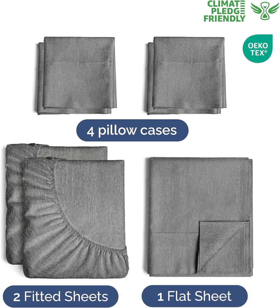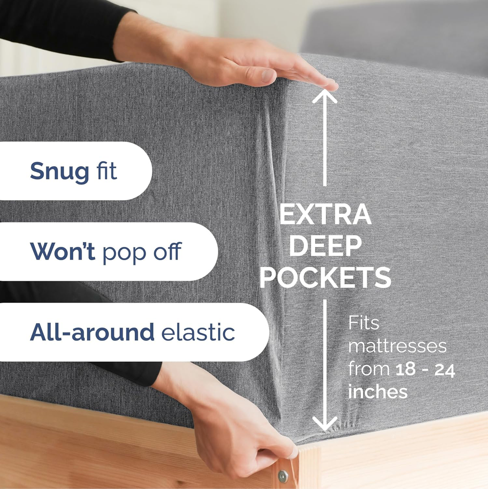Fast Shipping Great Customer Support Satisfaction Guaranteed DESCRIPTION Shipping Shipping Shipping All domestic packages are shipped for Free (Unless other shipping method was selected during the checkout) Most items ship and arrive much sooner than the estimate delivery date. Usually within 2-3 days from payment. However, we have longer estimates to compensate for the occasional delay or supply chain breakdown. We do not accept P.O. BOXES - PLEASE PROVIDE A PHYSICAL ADDRESS Return Return Return In the event that you would like to return your purchase, we allow returns that are processed within the defined return date (the return date is to be found in the return policy/shipping and handling section) Please contact us for a return authorization and the return shipping address. Payment Payment Payment PayPal is our preferred method of payments it's the quickest, easiest and most secure way to pay for your goods or services online. PayPal offers buyer and seller protection should there be a problem. If you do not have a PayPal account, to get started and buy your first item with us is very easy. Simply click on the 'Buy It Now' button and follow the eBay checkout steps. Select PayPal as the payment method you then will be given the chance to enter your card details in to PayPal's secure checkout in order to pay for your order. Once the payment has been made, you will then be given the opportunity to make your own PayPal account to make paying for your items in the future very easy. Should there be a problem with payment please do let us know. Feedback Feedback Feedback Customer satisfaction is very important to us. If you have any problem with your order,please contact us and we will do our best to make you satisfied, please do not leave a negative feedback before we resolve your problem. We guarantee that your issue will be solved quickly. As long as you are happy with your purchase of , please leave us a positive feedback. Your feedback is very important to us it affects our search placement on eBay. We will leave a positive feedback for you in return automatically once we receive your feedback. Contact Us Contact Us Contact Us If you have any queries, please contact us via ebay. We usually respond within 24 hours on weekdays. Thank you for visiting our ebay store! EXTRA DEEP POCKET SPLIT KING SHEETS / EXTRA DEEP FITTED SPLIT KING SHEETS: These bed sheets are for very deep pocket mattresses. They fit any mattress with pockets that are 18, 20, 21, 22 and 24 inches deep. There's stretchable elastic around the extra deep fitted sheet which stretches for a nice tug around your mattress. Perfect for extra tall & large mattresses. Rest assured these oversized sheets will stay on tight & stay in place! 7 PIECE SHEET SET: This bed sheet set comes with 4 pillowcases total all with beautiful decorative embroidery design on each pillow case. The pillow cases have enclosure designs. This bedding set will accommodate your extra thick mattress perfectly. GREAT FOR DOUBLE PILLOW TOP MATTRESS: These bed sheets are perfect for mattresses with a 3 inch or 4 inch topper on top, memory foam toppers, big mattress pads, pillow tops, foam toppers, big foam toppers, pillow top mattresses and memory foam. These sheets will not come off. MICROFIBER: These are the softest type of microfiber bed sheets we have created. Super soft with a light feel. Not crisp like cotton. If you're accustomed to cotton sheets and you've never tried microfiber sheets we recommend you give these a try. They're even softer than cotton! DIMENSIONS & SIZES: Flat Sheet 113 wide and 102 long. Fitted sheet 39 wide and 80 long with 21 inch pockets (has elastic so it can stretch). All four pillow cases are oversized 20 x 40 inch. Extra Deep Split King Sheet Set 7 Piece Cooling Luxury Soft Heathered Grey Click here to see description Fast Shipping Great Customer Support Satisfaction Guaranteed DESCRIPTION Shipping All domestic packages are shipped for Free (Unless other shipping method was selected during the checkout) We ship within two business days of payment, usually sooner Standard FREE shipping takes between 3-5 business days Expedited shipping takes between 2-3 business days Overnight shipping takes between 1-2 business days We do not accept P.O. BOXES - PLEASE PROVIDE A PHYSICAL ADDRESS We Ship Globally using ebay's GSP, the item is sent to a logistic center in KY and shipped from there to the rest of the world. International customers are responsible for all duties and taxes Contact your local authority for questions related to the amount of duties or taxes you will be responsible for Return In the event that you would like to return your purchase, we allow returns that are processed within the defined return date (the return date is to be found in the return policy/shipping and handling section) Please contact us for a return authorization and the return shipping address. Please contact us for a Return Merchandise Authorization (RMA) number. We advise you to use a reputable carrier service when returning your goods. Please pack all returns appropriately. We ship globally Via eBay's global shipping program (GSP). Thus we don't cover returns for items shipped globally. Buyers returning such items will be refunded ONLY for the item's cost and not for the shipping. please check the Voltage information and make sure it matches the one in your country. In case it's not stated in the description, do ask us. Payment PayPal is our preferred method of payments it's the quickest, easiest and most secure way to pay for your goods or services online. PayPal offers buyer and seller protection should there be a problem. If you do not have a PayPal account, to get started and buy your first item with us is very easy. Simply click on the 'Buy It Now' button and follow the eBay checkout steps. Select PayPal as the payment method you then will be given the chance to enter your card details in to PayPal's secure checkout in order to pay for your order.