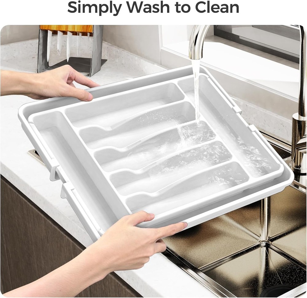 Keep Your Kitchen Organized π΄ β The Ukeetap Silverware Organizer features 7-9 compartments with 2 expandable panels , maximizing drawer space and keeping everything within reach. Adjustable Size βοΈ β Expands from 12.4" to 21" , fitting most standard drawers. Measure your drawer for the perfect fit. Premium & Safe Material β β Made of BPA-free plastic , waterproof and food-safe , perfect for storing cutlery, utensils, and more. Easy to Use π οΈ β No assembly required. Simply unfold and start organizing! Unique buckle design allows smooth sliding and convenient adjustments. Multi-Purpose π β Ideal for kitchen utensils, cosmetics, jewelry, stationery, and more. A practical & stylish gift for housewarmings or new home moves. White Color