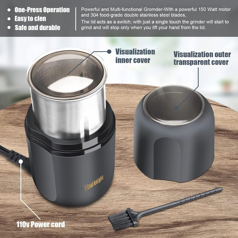 Electric Herb Grinder – Large Capacity Fast Stainless Steel Grinder for Herbs, Spices, Coffee & Pollen | 7.5" (Grey) | California eShop Experience effortless grinding with the Electric Herb Grinder , a powerful and efficient solution for herbs, spices, and coffee. Designed with a large capacity, durable stainless steel interior, and a one-touch safety operation, this grinder offers precision, speed, and convenience all in one. Ideal for kitchens, home bars, and herbal preparation. About This Item Large Capacity & Fast Grinding: Quickly grinds up to 120g of herbs or spices within 5–10 seconds. Visual lid lets you control coarseness easily. Multi-Function Grinder: Perfect for herbs, spices, pollen, and coffee beans — saving time and ensuring uniform results. One-Button Operation: Simple press-to-start design; grinding automatically stops when you lift your hand from the lid. Premium Materials: Features a 304 stainless steel inner tank and high-quality steel blade for long-lasting durability. High-Speed Performance: Operates at 30,000 RPM for quick, consistent results every time. Easy to Clean: Comes with a complimentary cleaning brush and detachable power cord for convenient storage. Product Description This Electric Herb and Spice Grinder combines modern technology with efficiency. Its large-capacity stainless steel chamber, transparent lid, and sharp rotating blades allow precise control over coarseness. Whether grinding herbs, coffee, or spices, this grinder performs with power and safety. The one-touch operation ensures ease of use, and the detachable cord allows easy cleaning and compact storage. Perfect for kitchens, coffee lovers, and herbal enthusiasts. Specifications Type: Electric Herb & Spice Grinder Capacity: 120g Speed: 30,000 RPM Operation: One-touch press-down power Material: 304 Stainless Steel + High-Quality Steel Blade Color: Grey Dimensions: 7.5 inches Power Cord: Detachable Package Contents - 1 × Electric Herb Grinder (7.5" Grey) - 1 × Cleaning Brush - 1 × Detachable Power Cord Important Information Do not exceed maximum fill capacity. Ensure lid is properly secured before operation. Avoid washing the motor base directly with water. Allow the grinder to cool between uses for best performance. Safety Information For household use only. Keep out of reach of children. Do not operate without lid. Avoid touching blades during cleaning. Disconnect power before cleaning or storage. Shipping Details Orders ship within 1–2 business days from our U.S. warehouse. Delivery typically arrives within 3–7 business days across the continental United States. All products are securely packaged for safe delivery. Customer Support For assistance, please contact California eShop through eBay messages. Our U.S.-based support team responds within 24 hours to help with orders, replacements, or product questions. About California eShop California eShop is a trusted U.S.-based online store specializing in premium home, kitchen, and lifestyle products. We focus on quality, fast shipping, and excellent customer service to ensure a reliable shopping experience every time. © California eShop — All Rights Reserved. Product specifications and packaging may vary slightly. Always follow product care and safety guidelines.