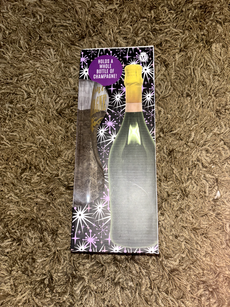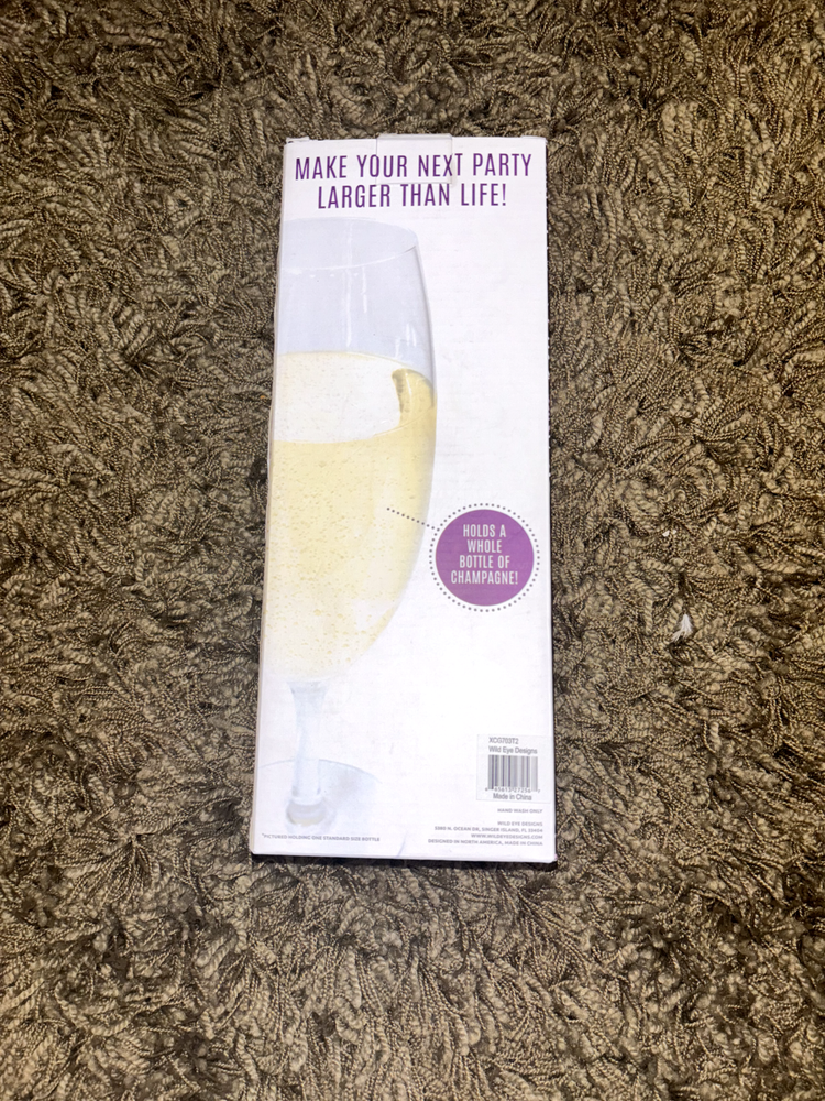 The Wild Eye Designs extra large champagne glass is designed to hold an entire bottle of champagne, making it a unique and eye-catching piece for special occasions or celebrations. Made of clear glass, this oversized champagne glass is perfect for making a statement at gatherings or events. Its large size and elegant design make it a standout addition to any glassware collection. Perfect for champagne lovers looking to add a touch of luxury to their celebrations.