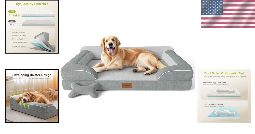 Extra Large Dog Bed Orthopedic Cooling Gel Foam Waterproof Washable Lounge ‹ › ‹ › ‹ › ‹ › ‹ › ‹ › ‹ › ‹ › ‹ › ‹ › ‹ › Extra Large Dog Bed Orthopedic Cooling Gel Foam | Waterproof | Washable Lounge Features: Orthopedic Support: Filled with a generous 4" thick layer of high density orthopedic foam to cushion your dog's joints, perfect for older dogs with anxiety or large breeds suffering from arthritis. High Quality Comfort: A cooling gel foam layer ensures a blissfully cool rest, while luxurious Dutch velvet offers a soft touch that's gentle on your pet's nose and paws. Waterproof & Washable: The waterproof TPU lining prevents liquids from soaking into the foam. The removable cover is machine washable for effortless hygiene. Pet Safe Materials: Crafted with OEKO-TEX Standard 100 certified fabric and CertiPUR-US certified memory foam, ensuring a secure resting spot for your furry companion. Included Toy: Comes with a durable dog chew toy, adding fun and enrichment to your pet’s lounging experience. Benefits: Provides optimal support for restful sleep and relief for aching joints. Incorporates cooling technology for comfort during warm days. Easy to maintain with a washable cover and waterproof lining. Safe and eco-friendly materials ensure your pet’s health and safety. Includes a fun chew toy for added enjoyment and stimulation. Why choose our Extra Large Dog Bed? Transform your pet's sleeping experience with our Extra Large Dog Bed designed for utmost comfort and wellbeing. With its superior orthopedic support, cooling gel foam, and luxurious fabric, your dog will sleep soundly and comfortably. The waterproof and machine washable design ensures it's easy to maintain, while the eco-friendly materials offer peace of mind. Plus, the included chew toy guarantees endless fun! Your furry friend deserves the best - order the Extra Large Dog Bed today and provide them with a sanctuary of comfort! Shipping Free & Fast Shipping - We offer free shipping to most of the USA with a normal delivery time of 3-7 days. However, due to the current situation, additional delivery time (up to 3 weeks) may be required for some items. Alternative Carriers - We may use alternative carriers (e.g. USPS, FedEx, UPS, etc.) to ensure your package arrives safely and on time. Due to the use of multiple carriers, we are unable to provide a tracking number automatically. Handling Time - Orders are processed and shipped within 1-2 business days of receiving cleared payment. Shipping Restrictions - Shipping to Alaska, Hawaii, Puerto Rico, Guam, and other US territories may incur shipping charges or delivery restrictions. Please contact us before ordering, or your order can be refunded/cancelled. State Restrictions - There may be restrictions based on your state of purchase. For example, certain items may not be shipped to California due to state regulations. Contact for Tracking Updates - If you require tracking updates or have any concerns about the delivery of your order, please feel free to contact us, and we will be happy to assist you. Return 30-Day Hassle-Free Returns - We want you to be completely satisfied with your purchase. If you are not, you can return the item within 30 days of receiving it for a full refund or exchange. Easy Return Process - To start a return, simply contact us and we will provide you with a prepaid return shipping label and detailed instructions. Restocking Fee - There are no restocking fees for returns. However, the buyer is responsible for return shipping costs if the return is not due to a seller's error. Refund Processing Time - Refunds will be processed within 5 business days of receiving the returned item in its condition. Payment We accept all major credit cards, PayPal, and Apple Pay for your convenience. Your payment information is secure and encrypted to ensure a safe and seamless transaction. Please complete your payment within 3 days of purchase to avoid any delays in shipping. Feedback Your feedback is extremely important to us. We strive to provide the best products and customer service possible. If you are satisfied with your purchase, please take a moment to leave us a positive review. If you have any concerns or issues with your order, please contact us before leaving negative feedback. We are committed to resolving any problems and ensuring your satisfaction. Contact Us If you have any questions or concerns, please feel free to out to our customer support team. You can contact us through the eBay messaging system. We are available Monday to Friday, 9:00 am to 5:00 pm EST, and we will do our best to respond to your inquiry within 24 hours. Buy it now and enjoy a pleasant shopping experience! Unit Quantity: 1 Features: Cooling,Covered,Machine Washable,Orthopedic,Removable Cover,Waterproof,Pet Safe Materials,Non-Skid Bottom,Easy to Clean Dog Size: XXL Dog Breed: Labrador Retriever Type: Sofa Material: Memory Foam