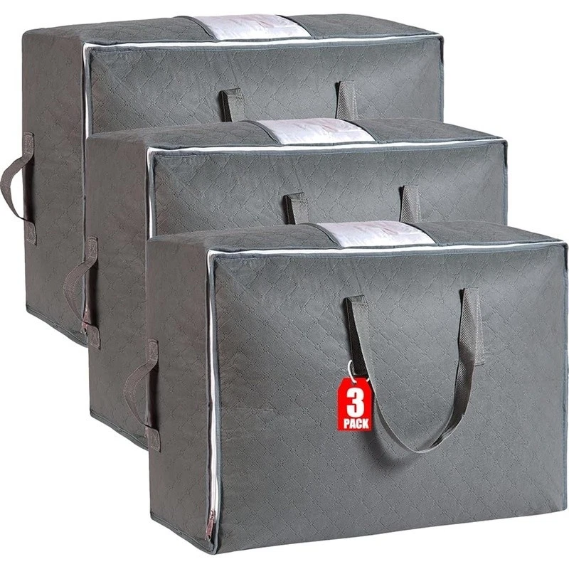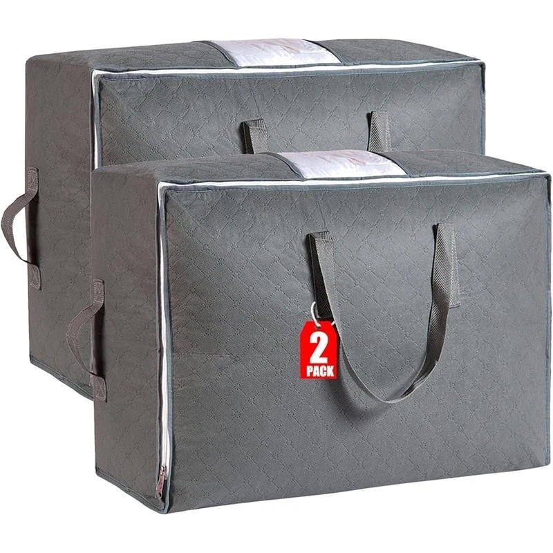 Heavy Duty 40 Gallon Wheeled Industrial Tote W/ Drip Resistant Lid Storage New 30.64 USD 32.95 USD Free shipping 7% off Cozy Electric Heating Blanket Faux Fur Soft Warm Throw Home Office Use 41.74 USD 44.88 USD Free shipping 7% off Bagless Upright Vacuum 720W Lightweight Multi Surface Cleaner 25ft Cord New 67.52 USD 72.6 USD Free shipping 7% off 10 Piece Glass Mixing Bowls Set W/ Lids Food Storage Prep Serving Dish New 19.31 USD 20.76 USD Free shipping 7% off Soft Heated Blanket Twin Sherpa Electric Auto Off 5 Heat Settings Comfortable US 41.84 USD 44.99 USD Free shipping 7% off Electric Heated Blanket Soft Warm Auto-Off 5 Heat Settings Safe Eco-Friendly New 41.75 USD 44.89 USD Free shipping 7% off Convertible Futon Sofa Bed 3 Adjustable Positions Stain Resistant Compact Design 142.22 USD 152.92 USD Free shipping 7% off Large Gravity Pet Waterer Dogs Cats Easy Clean Hydration System 4 Gallon New 32.86 USD 35.33 USD Free shipping 7% off Adjustable Freestanding Rifle Rack Holds 10 Guns Easy Assembly Gun Display Stand 46.26 USD 49.74 USD Free shipping 7% off 300ct Baby Wipes Light Fresh Chamomile Hypoallergenic Soft Thick Resealable New 11.09 USD 11.92 USD Free shipping 7% off Premium BBQ Apple Wood Chunks Smoking Grilling 500 Cu In Natural Flavor New 14.51 USD 15.6 USD Free shipping 7% off Wet Dog Food Chopped Ground Dinner Beef Canned Adult Nutrition 4 Pack 22oz Cans 15.34 USD 16.49 USD Free shipping 7% off About this item Extra Large Storage Capacity: Measuring 27.5" (L) x 12" (W) x 20" (H), this 105L Large storage bag offers ample space to store oversized comforters, bedding sets, blankets, pillows, seasonal clothing, plush toys, sweaters, and other soft items. Its roomy design keeps your belongings neatly organized. Premium Material: Crafted from odorless, triple-layered composite non-woven fabric, this storage bag combines softness with durability. The reinforced material resists wear, moisture, and dust while protecting contents. A clear viewing window allows quick identification of stored items. 4 Reinforced Handles for Easy Transport: Features 2 top handles for lifting and 2 side handles for sliding the bag in tight spaces. All handles are double-layered with thickened fabric for enhanced weight capacity and long-term use. Heavy-Duty Zipper: Equipped with a smooth-gliding #5 stainless steel zipper, this bag ensures secure closure even when fully packed. The two-way zipper design simplifies opening/closing without compromising durability. Space-Saving Foldable: Perfect for closets, under-bed storage, dorms, attics, or basements. This collapsible bag (no rigid frame or base) folds compactly into drawers when not in use, maximizing storage flexibility. Brand: Material: Fabric Color: Grey Product Dimensions: 27.5"L x 12"W x 20"H Special Feature: Lightweight Recommended Uses For Product: Bedding Storage, Blanket Storage, Closet Organization, Clothes Storage, Comforters Storage, Pillow Storage See more Closure Type: Zipper Shape: Rectangular Number of Items: 3 Size: 3pack You may also like Animal Drawing Set 12 Colored Pencils Learn to Draw Butterflies Art Supplies New 27.48 USD 29.55 USD Free shipping 7% off Durable Stainless Steel Griddle Spatula 2-Pack Ergonomic Handle Dishwasher Safe 33.03 USD 35.52 USD Free shipping 7% off Aluminum Square Cake Pan Set W/ Lids 8 inch Disposable Baking Pans 3 Count New 58.55 USD 62.96 USD Free shipping 7% off Non-Stick Fry Pan Ergonomic Handle Induction Safe Dishwasher Safe Cookware New 58.07 USD 62.44 USD Free shipping 7% off Soft Bait Binder Fishing Tackle Organizer W/ Heavy Duty Sleeves & Storage Bags 41.64 USD 44.77 USD Free shipping 7% off Non-Stick Jumbo Muffin Pan Baking Tray Durable Cupcake Tin Easy Release 6-Cup US 25.5 USD 27.42 USD Free shipping 7% off 3 Tier Wall Shelf Wooden Bracket Decorative Display Unit Home Organization New 30.5 USD 32.8 USD Free shipping 7% off Adjustable Height Plastic Folding Table 40" Black Portable & Easy to Clean New 61.29 USD 65.9 USD Free shipping 7% off Preschool Activity Assembly Toy Set Bolts Electric Drill Kit Transparent Base 53.45 USD 57.47 USD Free shipping 7% off Universal Packing Box TVs Mirrors Art Includes Foam Corners Bubble Roll New 35.98 USD 38.69 USD Free shipping 7% off 3-Tier Industrial Metal End Table W/ Storage Shelves Living Room 2-Pack New 111.61 USD 120.01 USD Free shipping 7% off Reflective Premium Dog Collar Metal Buckle Heavy Duty Olive Green Extra Small US 16.46 USD 17.7 USD Free shipping 7% off