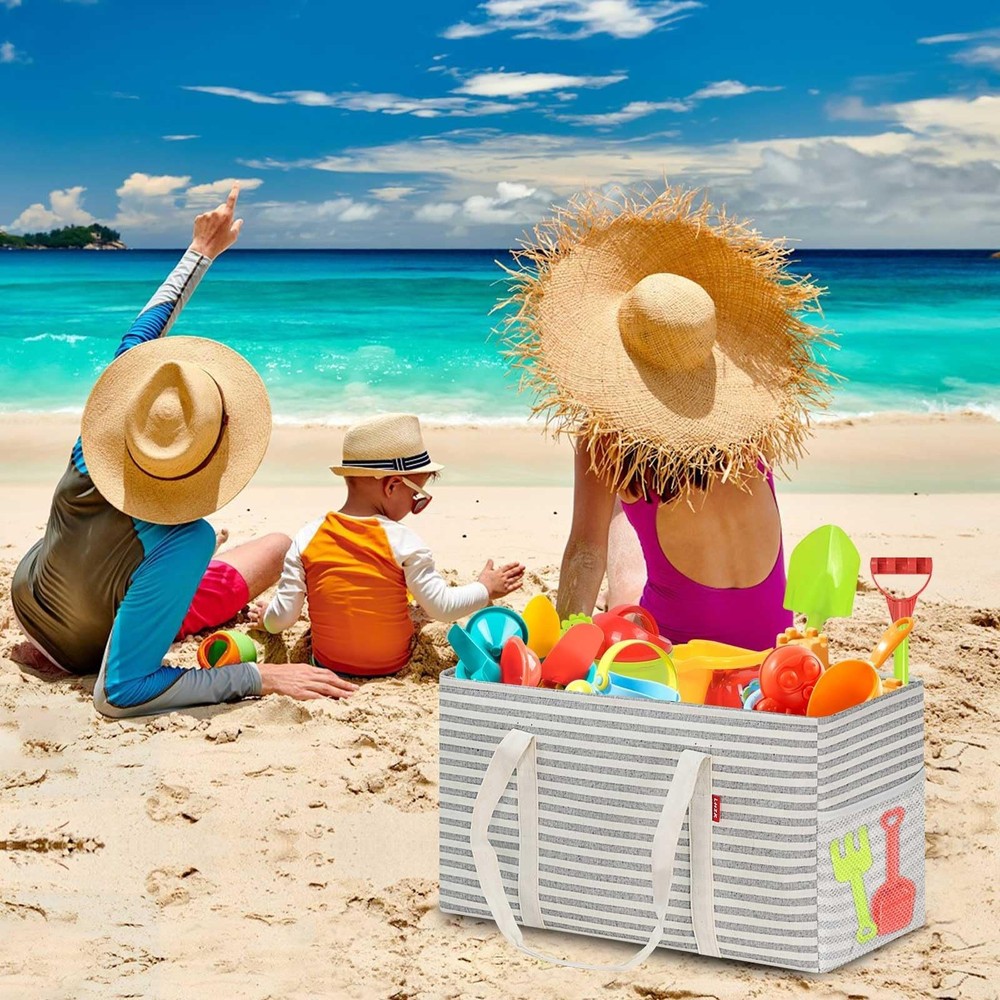 Extra Large Utility Tote Bag Reinforced Wire Frame Reusable Grocery Beach