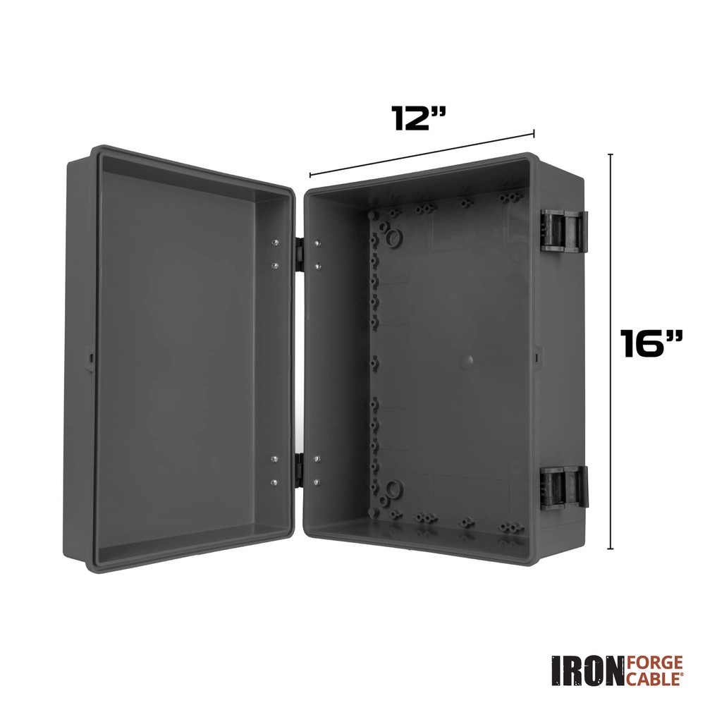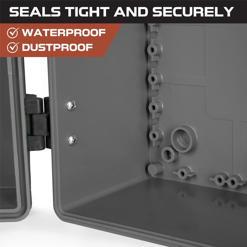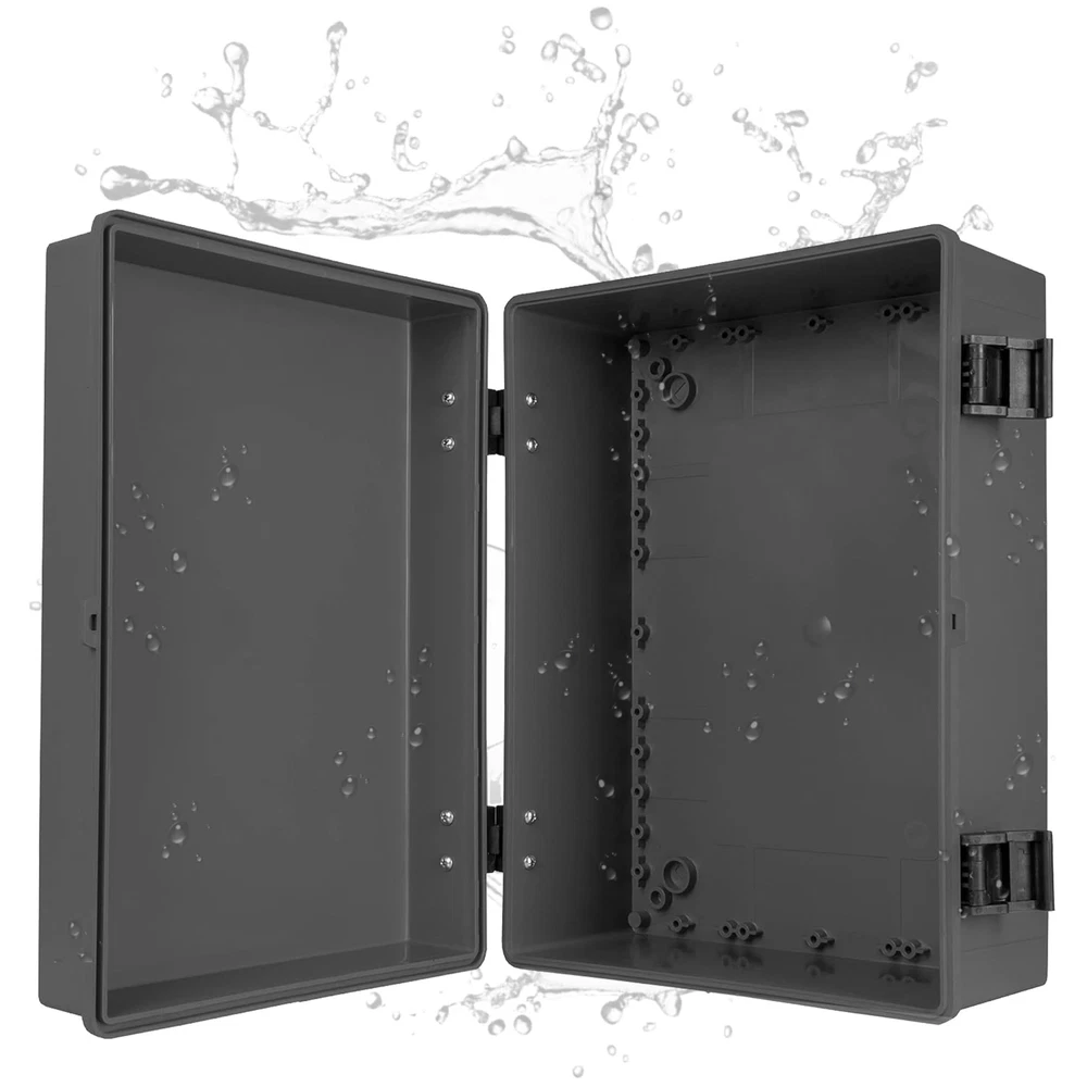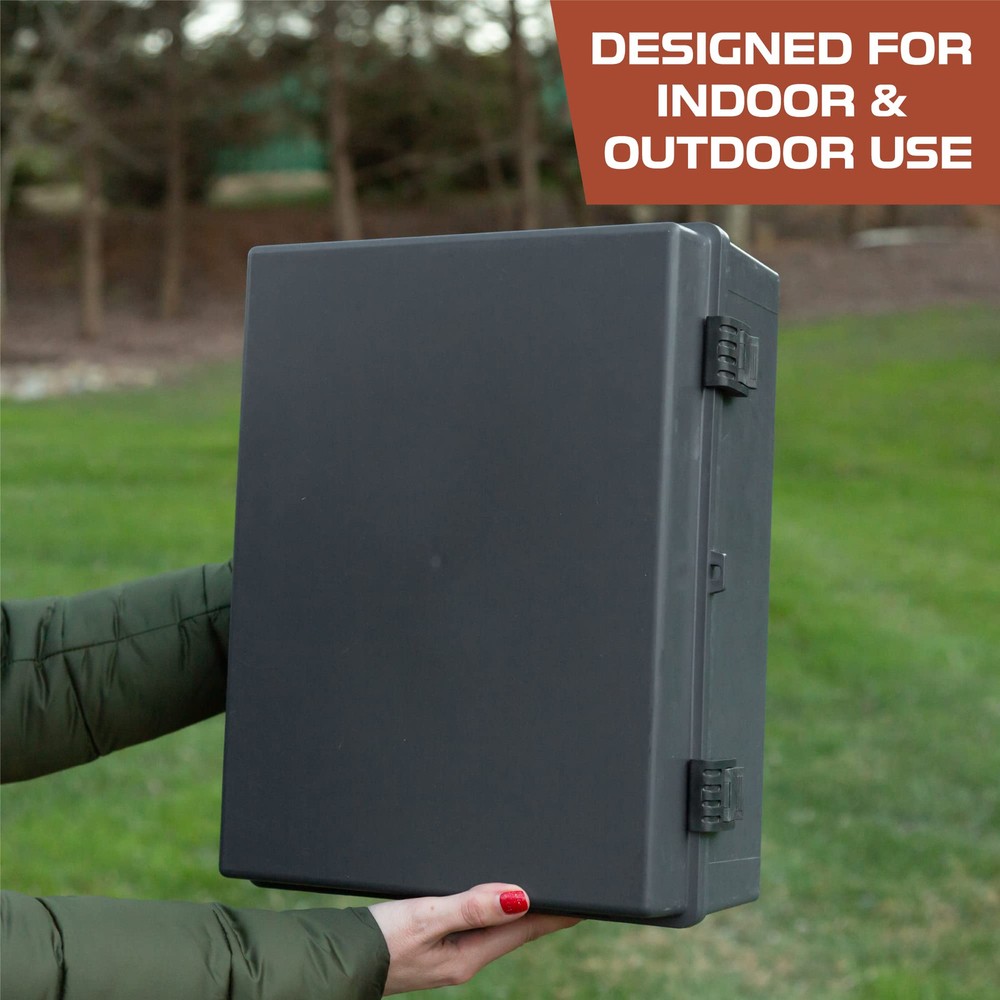 IP65 Outdoor Electrical Box - This 's extra large electrical junction boxes are made of industrial grade ABS plastic, providing the waterproof box exceptional resistance against impact and ensuring excellent electrical insulation. Keeps electrical wires and cables safe from dust, dirt, rain and snow. Standard DIY Usage - Versatile and drillable, this black junction box with electrical panel cover is ideal for a wide range of applications: landscaping, outdoor light decoration, electronics, lighting systems, solar panel systems, irrigation controls, ham radio equipments, CCTV camera, starlink devices, routers, and more. This durable ABS plastic enclosure excels in outdoor environments with well Wi-Fi signal reception. It’s your essential tool for innovative and seamless utility projects. Easy Installation - This extra large-size outdoor electrical box waterproof is made of industrial grade ABS plastic which can be safely drilled and mounted without fear of cracking. Conduit fittings can be used to seal the box once drilled. Sturdy and dependable design suited for multiple environments. Convenient Access - Project box comes with a corrosion resistant hinge that allows you to easily access the components inside. External dimension of the box measure: width 16" x length 12" x depth 7.2" inch (400*300*180 mm). Internal dimension: width 15.2" x length 11.2" x depth 6.6" inch Integrity in Service: , a U.S. veteran-owned business, stands behind its products. We're here to help resolve any issues that you may have.
