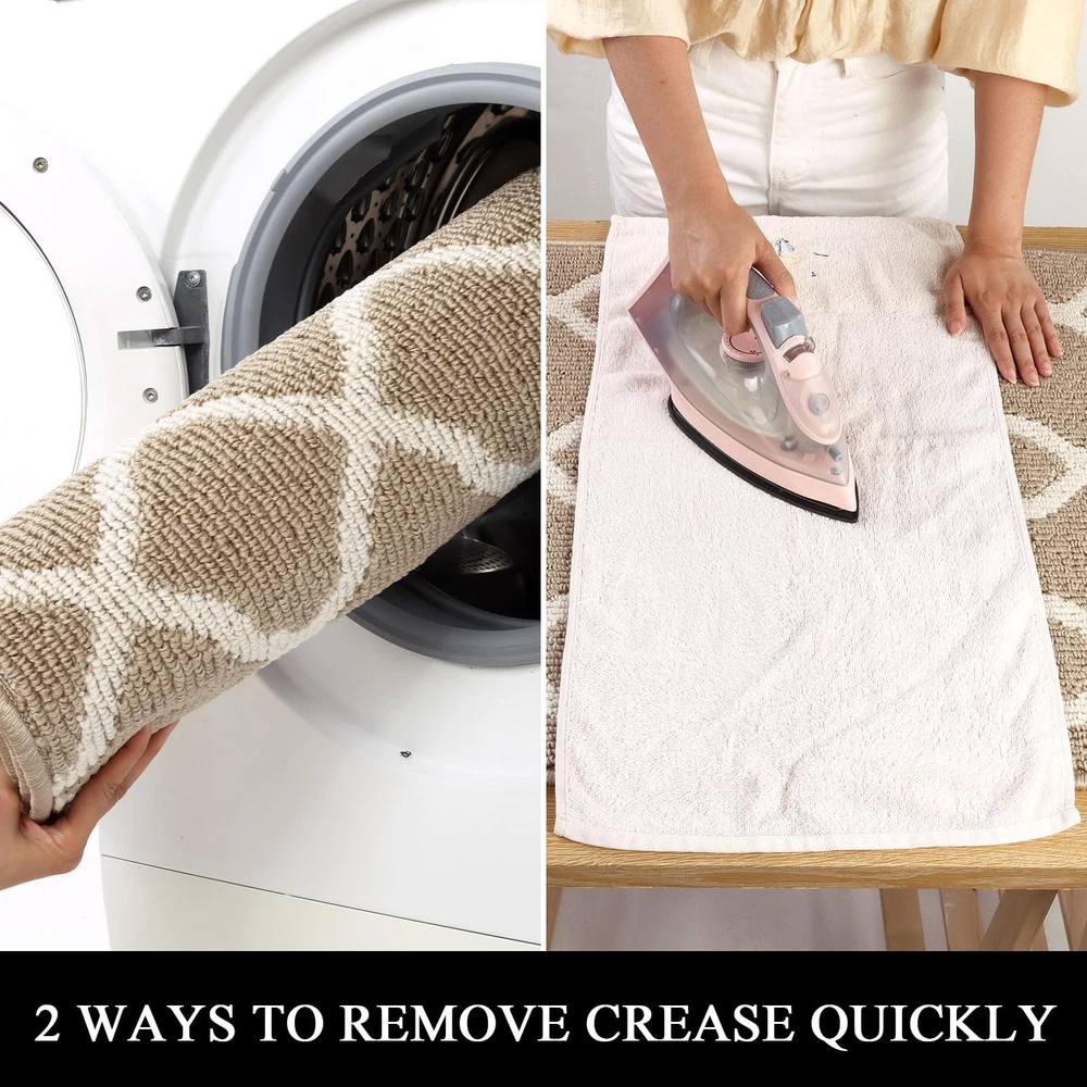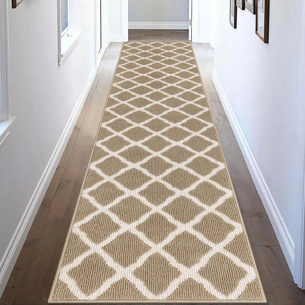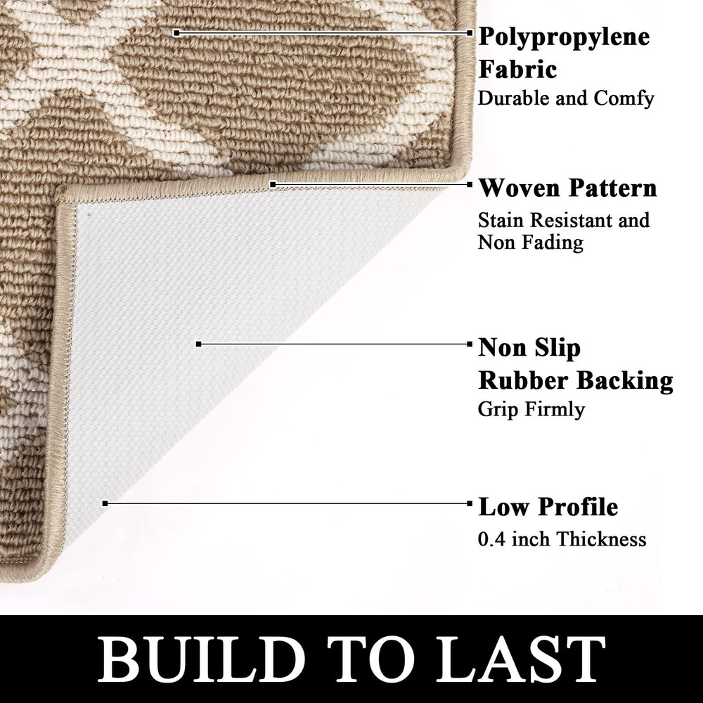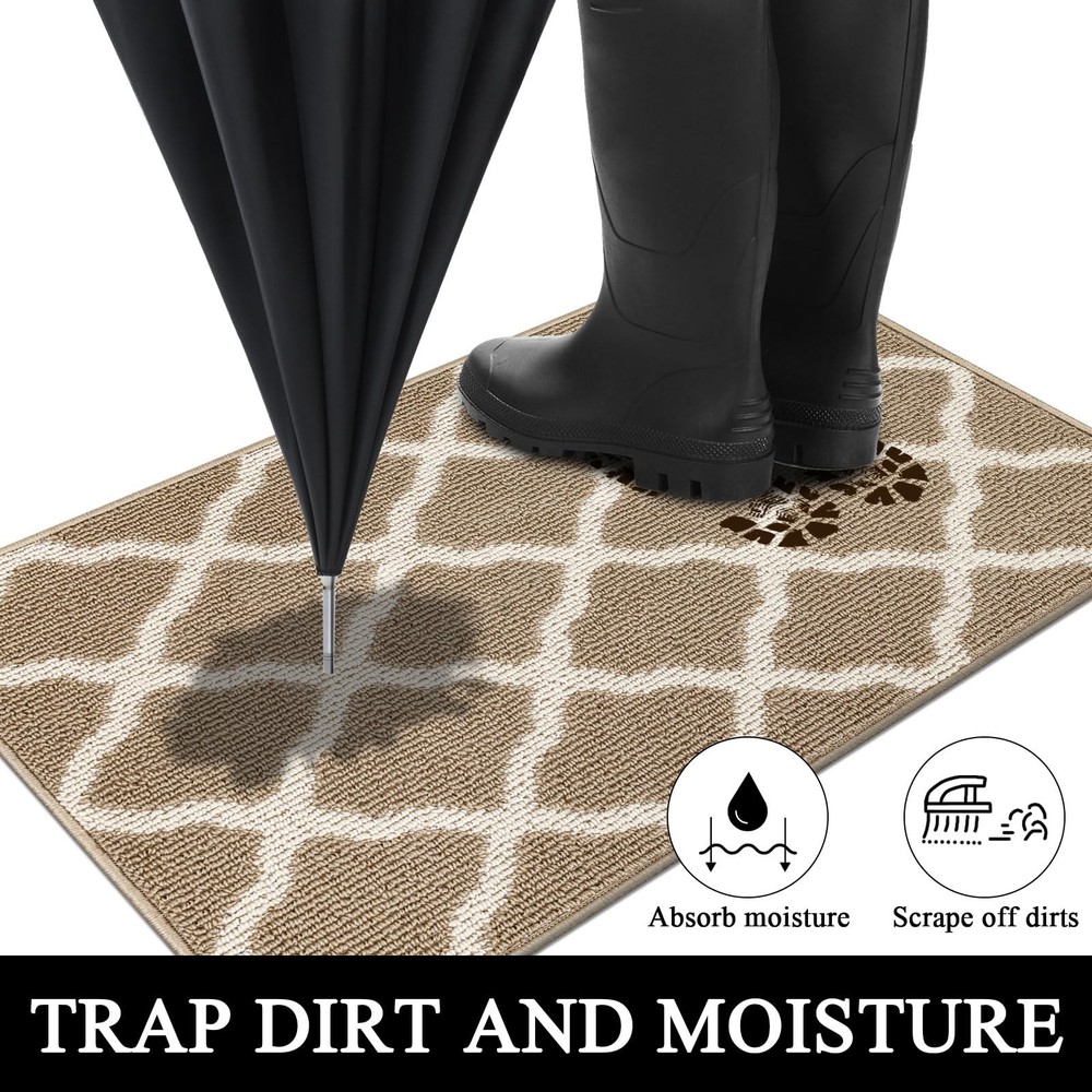 SHACOS Indoor Doormats Runner Rugs Non Slip Long Entryway Rug Washable Door Mats Front Door Rug Mats Water Absorbent Dirt Trapper Floor Mat Rubber Backing Runners for Kitchen Hallway Mud Room Porch Garage Laundry Room Material: Made of sturdy polypropylene fabric Surface, absorbs water and mud. Non slip TP rubber Backing keeps the mat in place. Features: Raised fabric loops effectively scrape off dirt, dust, mud, sand, grass or snow and absorb moisture from shoes and fur paws, protect the floors and dampen the noise. Well finished edges prevent the mat from falling apart and ensure longevity. Waterproof back prevents liquid from seeping through the mat. Multi-purpose floor mats for indoor outdoor, front door welcome mat, back door mat, inside doormat, entry rug, entrance rug, mud room rug and kitchen sink rug, floor mat in front of oven, laundry room mat in front of washer and dryer, long rug runners for hallway. How to clean: Simply vacuum clean, sweep with a broom or use a garden hose to rinse the mat outdoors. For a deeper clean,machine wash and dry. Long Runner Size: 2x10 ft/ 60x305 cm. Low Profile. 0.4 inch thickness. Simple Elegant Moroccan Trellis Lattice pattern. A beautiful welcome door mat. Looks great on wood or tile floors. Dirt & Water Absorbent Hallway Runner Rug. Dense polypropylene loops surface catches and absorbs dirt, sand, grime, snow, mud, water and other debris from shoes and boots. Protecting your floor from water, stains and scratches. Non Slip and Waterproof Rubber Backing. Textured TP rubber backing stays firmly in place and prevents tripping hazards, provides extra safety for you and your family. Multi-purpose runner rug for home and office, can be used as runner rug for entryway, doorway, hallway, kitchen rug in front of sink and oven, laundry room mat in front of washer and dryer, accent rug for high foot traffic area. Easily cleaned up by shaking, vacuuming, hosing off. Machine wash, cold water, gentle cycle, tumble dry on low heat. Low maintenance and quick drying. Note: Rugs may contain temporary creases upon arrival, allow time for creases to flatten and settle