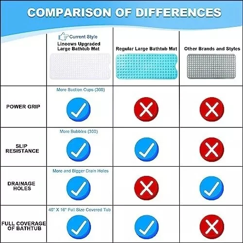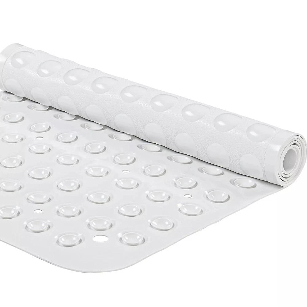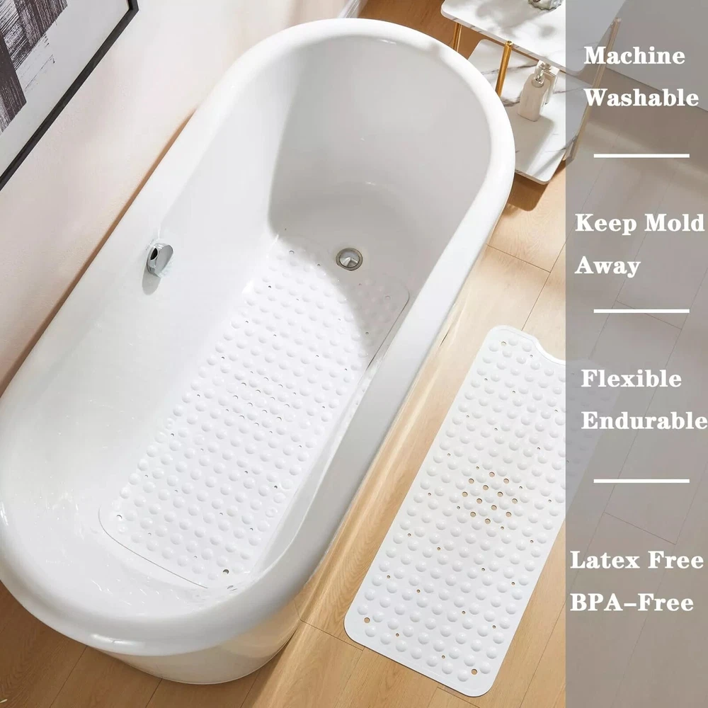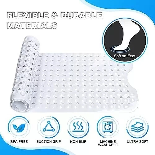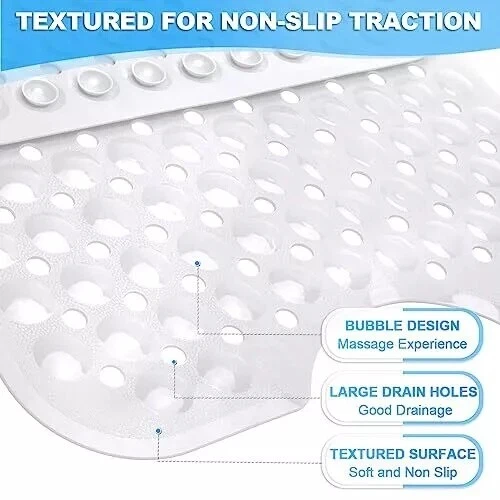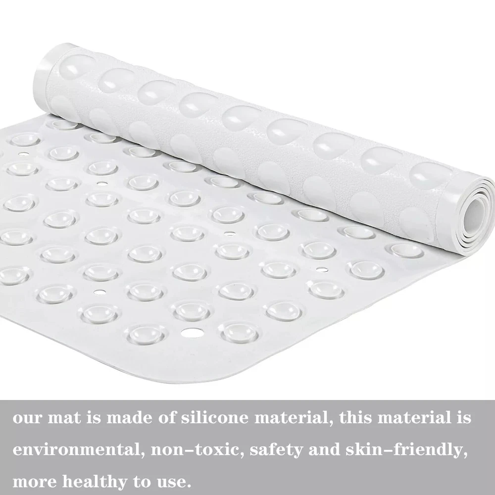 Item Description: This large bathtub mat is suitable for almost all smooth surface bathtubs, which will be perfect for daily household use. Protect them from slipping when showering and let's them just enjoy the shower time everyday happily. It has a textured surface, relax with the comfort of the small raised bubbles gently massaging your weary feet. Easy Clean, machine Washable. Easy To remove for maintenance and store preserve your bath and create a safe environment for the family water drainage system avoids the build up of mould Run a little water in your bath tub so that the bottom is wet before applying the mat and suctions. Size: 100cm x 40cm/39.8x15.8inch Package Includes: 1* Shower Mat