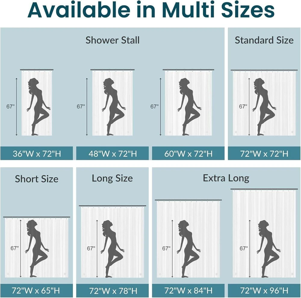 CONTACT US DIRECTLY FOR FREE & PREPAID RETURNS Extra Long Shower Curtain Liner 72 X 84 Clear Plastic Shower Liner Peva Waterpro REVIEWS The product came very well packaged. I'm very happy. thank you for everything. Seller strongly recommended. This is great! I definitely recommend! Product looks amazing Delivery was fast. Excellent seller, great communication. I advise everyone