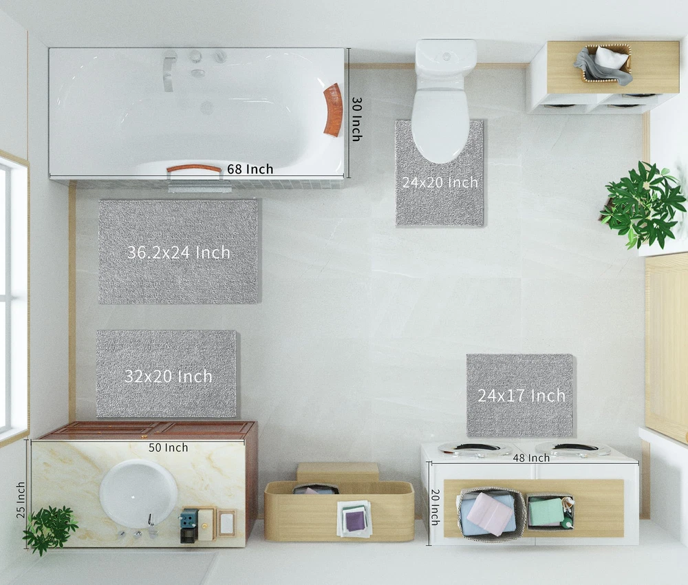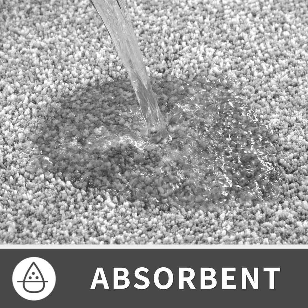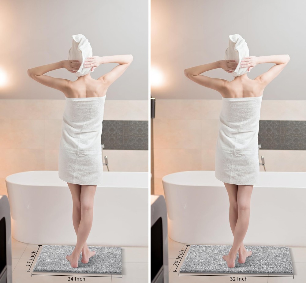 【ULTRA DENSTIY】:fluffy bathroom rugs are constructed of 1 inches height premium thick and soft hight resilience microfiber fibers, using an innovative weaving process, softer and elasticity than most other brands 【WATER DISAPPEARS INSTANTLY】:The hight density microfiber fabric helps save your floors from dripping water while you're stepping out of the bath,shower, or getting ready by the sink.When you step on the bathroom mat with bare feet, it will instantly absorb the water droplets on your feet, let the warmth wrap your feet, and you don't need to bend over to wipe 【TOO SUPPLE】:The elasticity and softness of this bathroom mat is unbelievable.We woven a lot of microfiber into this bathroom mat with a density that no other bathroom mat can compete with. When you step on it, these microfiber fabrics will give you strong support so you won't feel the hard ground. What follows is a comfortable and warm touch that will make you reluctant to leave 【STAY IN PLACE】:The shaggy bathroom rug use the more expensive TP rubber backing (not PVC or glue) which is much stronger and sturdy,no cracking and peeling problems.Note: Do not place mat on wet surface. Make sure floors are dry underneath the rug to prevent the rug from slipping 【EASY CARE】:fluffy bathroom mat is easy to clean. Machine wash separately with cold water and mild detergent (no chlorine or bleach) tumble dry at low speed or hang dry. Color will not fade and will stay vibrant for many years no matter how many times you wash and dry!