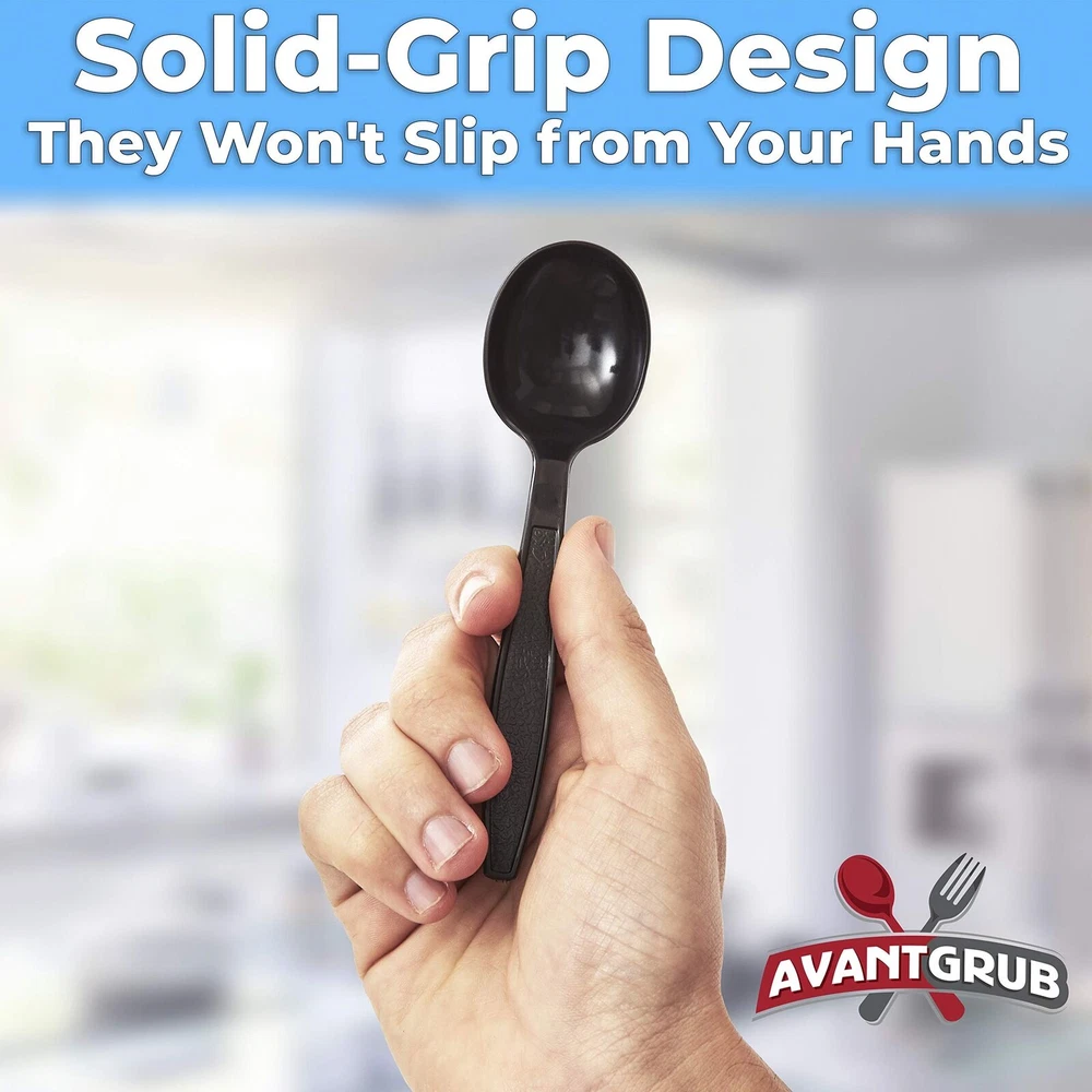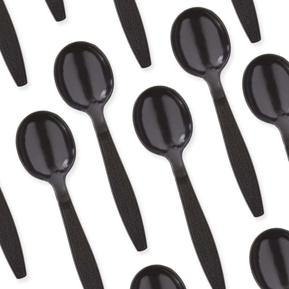 Extra Sturdy Pro-Grade Plastic Soup Spoons 200 CT. Black Heavy Duty Recyclabl...
