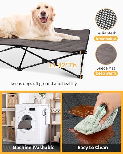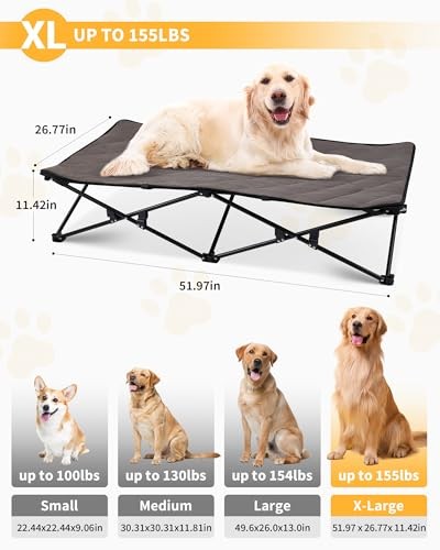 30 Days Return Policy Fast Delivery Trusted seller Elevated Dog Bed for XL Dogs, Outdoor Raised Cooling Pet Cot Bed with Washable Breathable Mesh & No-Slip Feet Perfect for Camping, Backyard, Indoor Use (X-Large, Black) Product Description IDEAL FOR EXTRA LARGE BREEDS: Designed with a compact 51.9 x 26.7x 11.4in size, this elevated dog bed perfectly fits the needs of Large dogs, providing a secure and comfortable resting space tailored to their size and weight. ELEVATED COMFORT FOR EVERY SEASON: Raised dog bed keeps your pup off the ground for better airflow, reduced moisture, and fewer bugs. With a removable cushion and three versatile setups, it offers customized comfort in every season: cooling mesh only for hot days, with added pad for warmth, or the cushion alone for indoor lounging. EASY SETUP & STORAGE: This XL elevated dog bed features a quick-open design for hassle-free setup and takedown. Plus, it comes with a durable Oxford fabric bag for easy storage and portability, perfect for travel or compact living spaces. BUILT FOR MAXIMUM STABILITY & SAFETY: With heavy-duty steel frame and cross-brace design, this elevated dog bed supports up to 155LBS, ensuring your pet enjoys a safe, secure rest. Anti-slip feet keep it firmly in place, providing peace of mind for both you and your pet. EASY TO CLEAN & MAINTAIN: Featuring a breathable, durable Teslin mesh surface that wipes clean with a damp cloth, this xl dog cot is built for hassle-free maintenance. The removable cushion with suede-like fabric and Oxford cloth bottom is machine washable, making cleaning a breeze. Shipping Returns Payment Shipping Shipping is FREE to all addresses other than APO/PO boxes in the lower 48 states. All our stock ships from US-based warehouses. Shipped via USPS or UPS (depending on location and package weight) Unless stated otherwise, all orders will ship within 24-72 hours of your payment being processed. Check our feedback to see the great reviews of FAST shipping we offer. Returns As our valued customer, we will do our best to make sure the product you receive arrives to you on time and as expected. If you are not satisfied with your purchase, please contact us within 30 days of receiving your order to process a return. Payment We currently accept payment via eBay managed payments only. Once payment is cleared, we will dispatch your shipment within 1-3 business days. Please refer to the "Shipping" tab for more information regarding shipping speed to your destination.
