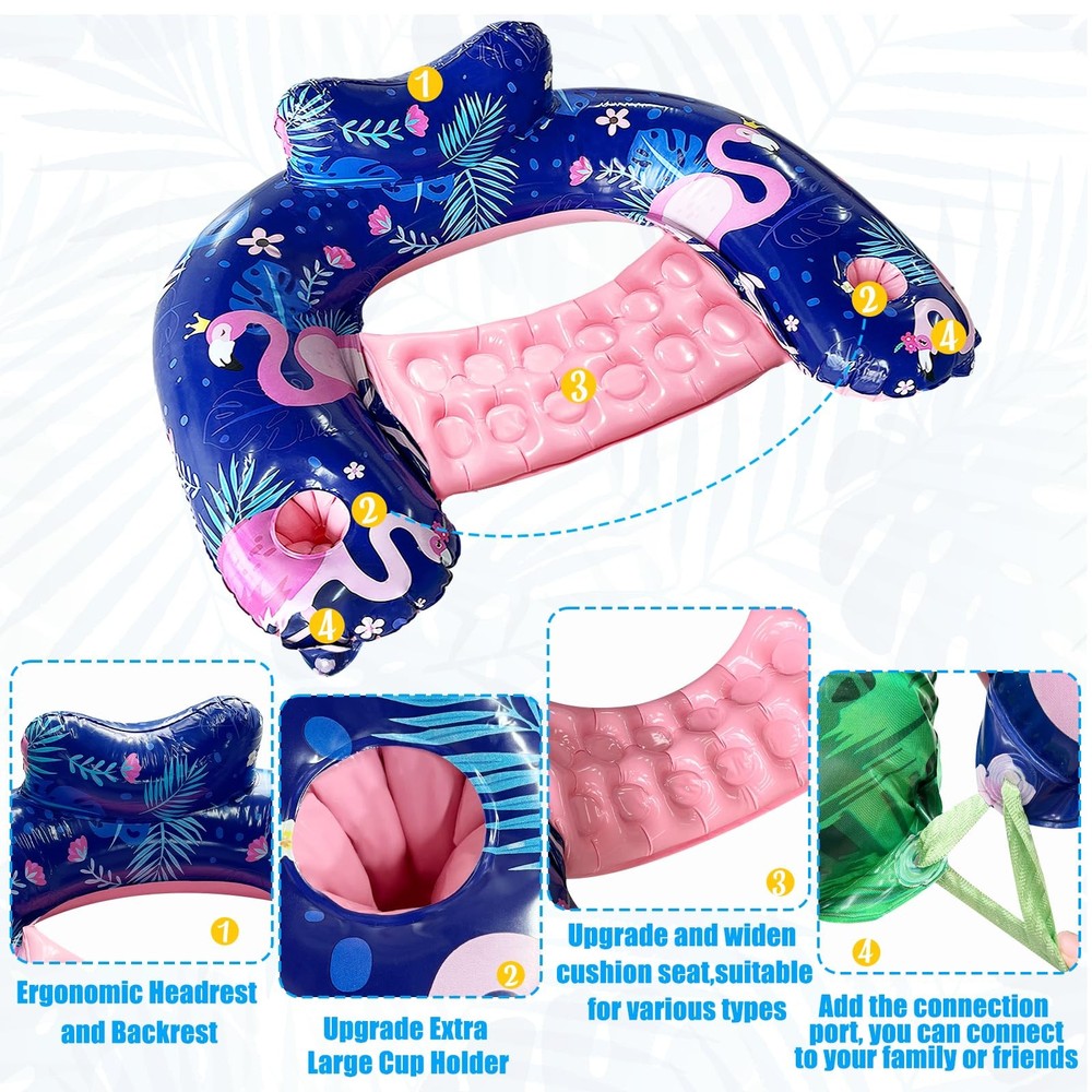 Inflatable Pool Float Chair ใ๐๐๐ฅ๐ฎ๐ ๐๐๐๐คใThe set contains 1 pack Inflatable float chairs. Additionally, We also have an inflatable pump, instruction manual and patch, so that you can experience the ultimate convenience, you don't have to worry about installation, use and repair issues. ใ๐๐จ๐ง๐๐ข๐ ๐ฎ๐ซ๐๐ญ๐ข๐จ๐ง ๐๐ฉ๐ ๐ซ๐๐๐ใ:Pool chair float is designed with a reinforced seat, suitable for multiple ages. Complete with supportive ergonomics headrest and backrest for more comfort, built-in cup holders for more convenience, allow you to keep your favorite beverages within reach and ensure hours of enjoyable floating during hot summer days. ใ๐๐ซ๐๐ฆ๐ข๐ฎ๐ฆ ๐๐๐ญ๐๐ซ๐ข๐๐ฅ ใFloating pool chair is crafted from premium PVC, soft and thick, can support over 400 pounds(180kg). The U-shaped design makes it not easy to tip over or tilt, ensuring both comfort and durability. ใ๐๐จ๐ง๐๐ข๐ ๐ฎ๐ซ๐๐ญ๐ข๐จ๐ง ๐๐ฉ๐ ๐ซ๐๐๐ใ:Pool chair float is designed with a reinforced seat, suitable for multiple ages. Complete with supportive ergonomics headrest and backrest for more comfort, built-in cup holders for more convenience, allow you to keep your favorite beverages within reach and ensure hours of enjoyable floating during hot summer days. ใ๐๐๐ฌ๐ญ ๐๐ข๐๐ญ & ๐๐๐ฌ๐ฌ๐ฅ๐-๐ ๐ซ๐๐ ๐๐๐ญ๐๐ซ-๐๐๐ฅ๐ใ:The pool float seat is the best gift for family and friends! Customer satisfaction is our primary task. If you have any problems or questions about our products, please send us a message through โcontact sellersโ at any time! We will do our best to provide you with perfect after-sales service!