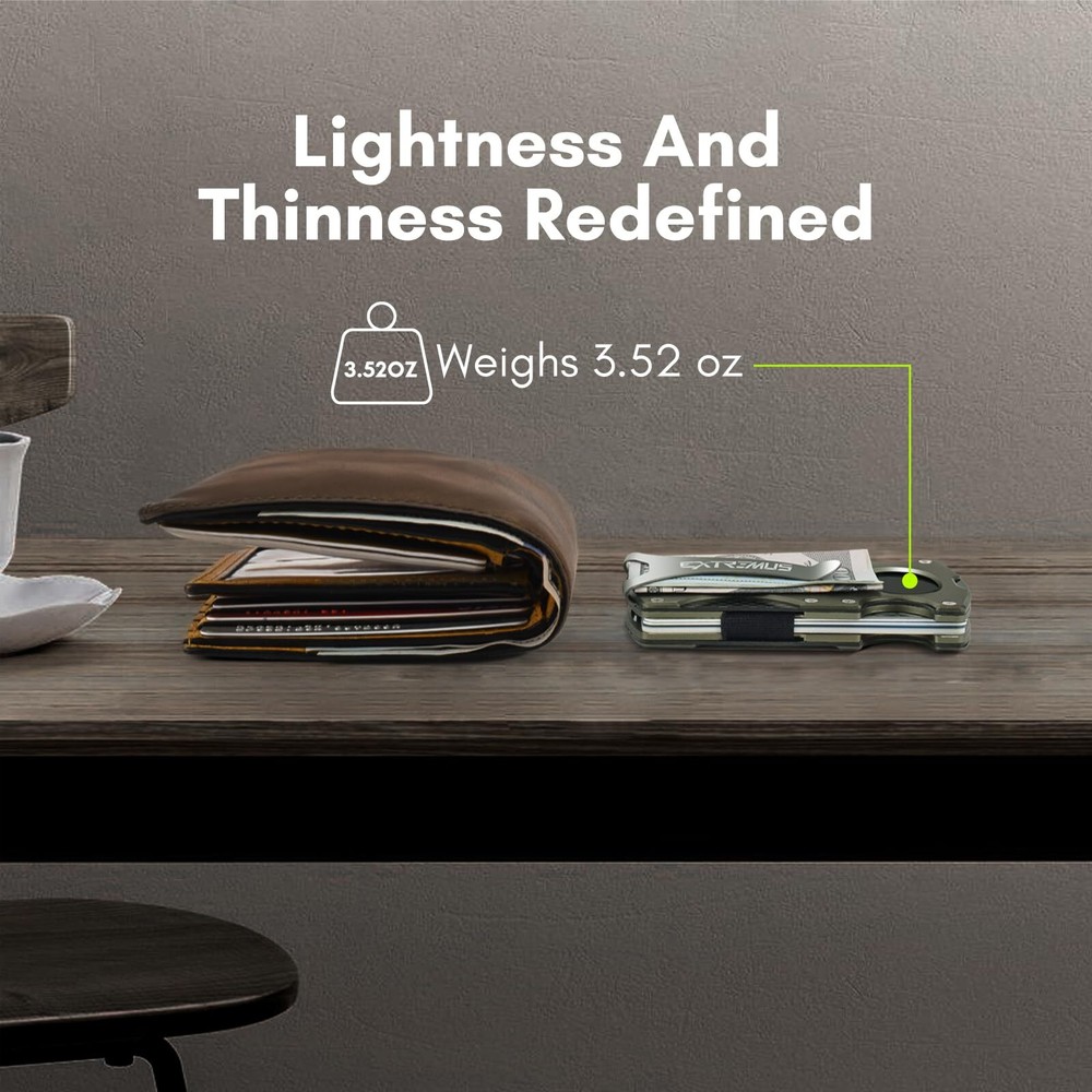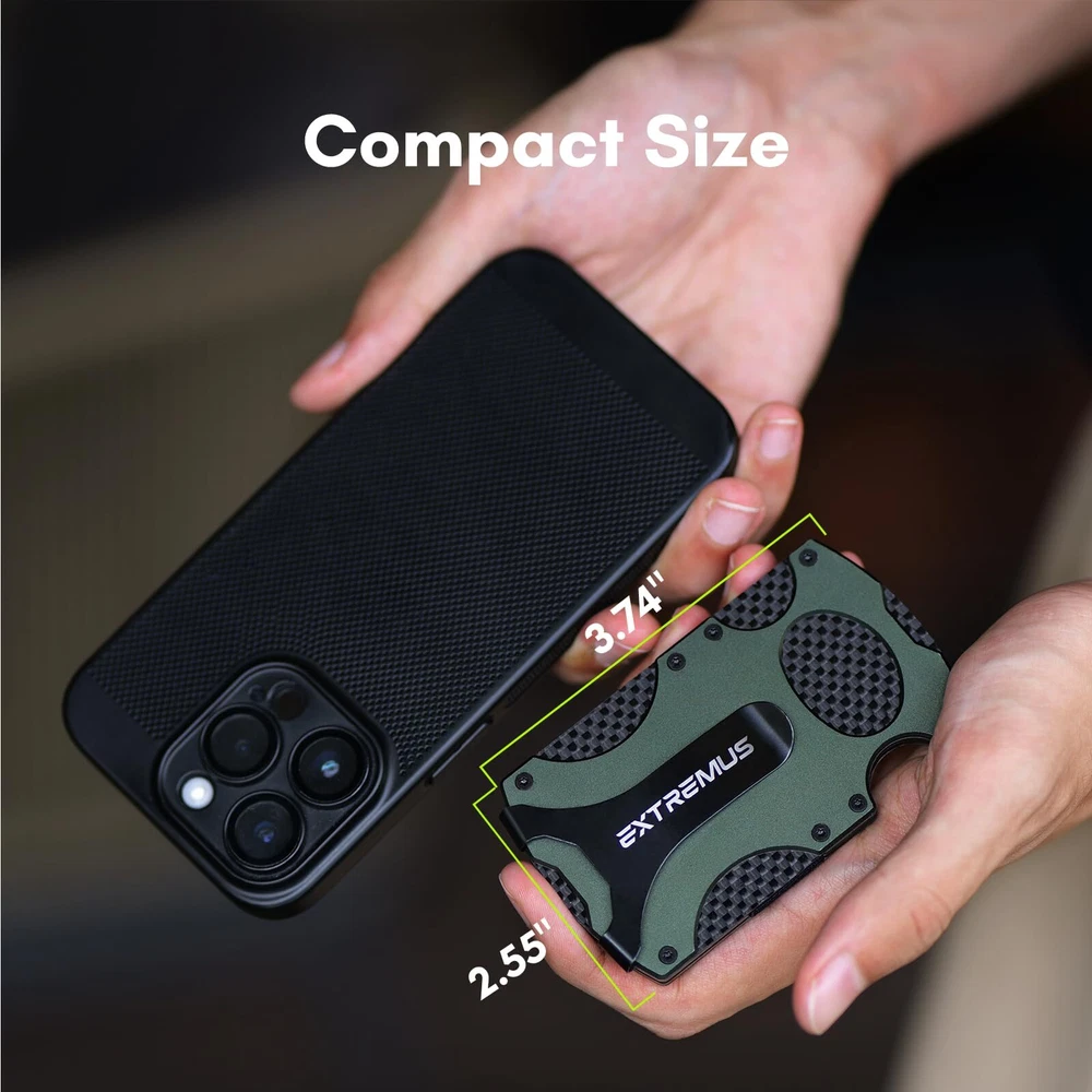 Extremus Mens Wallet, Slim Tactical Wallet with Money Clip and Credit Card Holde Features: Stands the Test of Time : Crafted from premium carbon fiber and lightweight aluminum, this slim wallet for men transcends traditional leather designs in durability. One customer even shared a remarkable story: over a year ago, while rescuing his father-in-law who had fallen into the water, he accidentally lost this wallet. Recently, the wallet was unexpectedly found, and it was discovered that the cards inside were still securely held, perfectly intact. Compactness & Utility : Measuring just 3.74'' x 2.55'', it's akin to a standard credit card holder in size, and weighing only 3.52OZ, it's even lighter than a chocolate bar. This minimalist wallet for men can easily fit into front pockets, backpacks, or glove compartments, and its special C-type card slot and stainless steel money clip make accessing your essentials a breeze. Travel with Ease, One Wallet Multifunctional: With its unique three-sided expandable elastic band design, this wallet can effortlessly accommodate 15 - 24 cards and 9 bills. Whether for daily errands or long journeys, this wallet for men adjusts to your needs. High elasticity offers both space for additional cards and the ability to retain its slender form—hallmarks of an elite slim wallet. Double the Security: In bustling subways or teeming crowds, the built-in RFID shield of this wallet for men serves as your invisible sentinel. Your personal data stays safeguarded from lurking scanners. And, echoing the security prowess of a tactical money clip, it ensures your bills stay firmly in place. The Perfect Choice for Men: When pitted against other brands, the Extremus money clip wallet emerges distinct, thanks to its unmatched materials, design, and utility. Perfect for sons, husbands, or fathers, it's not just a wallet—it's an experience, making it an ideal gift for moments like Father’s Day, graduations, and more. Details: Description Introducing the Extremus Wallet: A Timeless and Durable Essential Extremus Wallet. This wallet elevating it beyond the realm of traditional leather designs and ensuring unmatched durability. When it comes to compactness and utility, the Extremus Wallet excels. It is as compact as a standard credit card holder. This slim profile allows it to effortlessly slide into front pockets, backpacks, or glove compartments, making it highly versatile for everyday use. Its special card slot and stainless steel money clip further enhance its functionality, providing easy access to your essentials whenever you need them. This wallet adapts to your needs, providing ample space for all your important cards and bills. Despite its expandable capacity, the high elasticity of the wallet ensures it maintains a slender form, a hallmark of an elite and minimalist design. Security is a paramount concern, especially in bustling subways or crowded environments. The Extremus Wallet comes equipped with a built-in RFID shield, serving as your invisible sentinel against potential threats. This shield protects your personal data from lurking scanners, ensuring your information remains safeguarded. Additionally, the money clip integrated into the wallet ensures that your bills stay firmly in place, providing an extra layer of security and convenience. When compared to other brands, the Extremus Carbon Fiber Wallet stands out as the perfect choice for men. RFID blocking, card holder, money clip, Extremus, RFID wallets, slim wallet, travel wallet. Features: Stands the Test of Time : Crafted from premium carbon fiber and lightweight aluminum, this slim wallet for men transcends traditional leather designs in durability. One customer even shared a remarkable story: over a year ago, while rescuing his father-in-law who had fallen into the water, he accidentally lost this wallet. Recently, the wallet was unexpectedly found, and it was discovered that the cards inside were still securely held, perfectly intact. Compactness & Utility : Measuring just 3.74'' x 2.55'', it's akin to a standard credit card holder in size, and weighing only 3.52OZ, it's even lighter than a chocolate bar. This minimalist wallet for men can easily fit into front pockets, backpacks, or glove compartments, and its special C-type card slot and stainless steel money clip make accessing your essentials a breeze. Travel with Ease, One Wallet Multifunctional: With its unique three-sided expandable elastic band design, this wallet can effortlessly accommodate 15 - 24 cards and 9 bills. Whether for daily errands or long journeys, this wallet for men adjusts to your needs. High elasticity offers both space for additional cards and the ability to retain its slender form—hallmarks of an elite slim wallet. Double the Security: In bustling subways or teeming crowds, the built-in RFID shield of this wallet for men serves as your invisible sentinel. Your personal data stays safeguarded from lurking scanners. And, echoing the security prowess of a tactical money clip, it ensures your bills stay firmly in place. The Perfect Choice for Men: When pitted against other brands, the Extremus money clip wallet emerges distinct, thanks to its unmatched materials, design, and utility. Perfect for sons, husbands, or fathers, it's not just a wallet—it's an experience, making it an ideal gift for moments like Father’s Day, graduations, and more. Details: Description Introducing the Extremus Wallet: A Timeless and Durable Essential Extremus Wallet. This wallet elevating it beyond the realm of traditional leather designs and ensuring unmatched durability. When it comes to compactness and utility, the Extremus Wallet excels. It is as compact as a standard credit card holder. This slim profile allows it to effortlessly slide into front pockets, backpacks, or glove compartments, making it highly versatile for everyday use. Its special card slot and stainless steel money clip further enhance its functionality, providing easy access to 