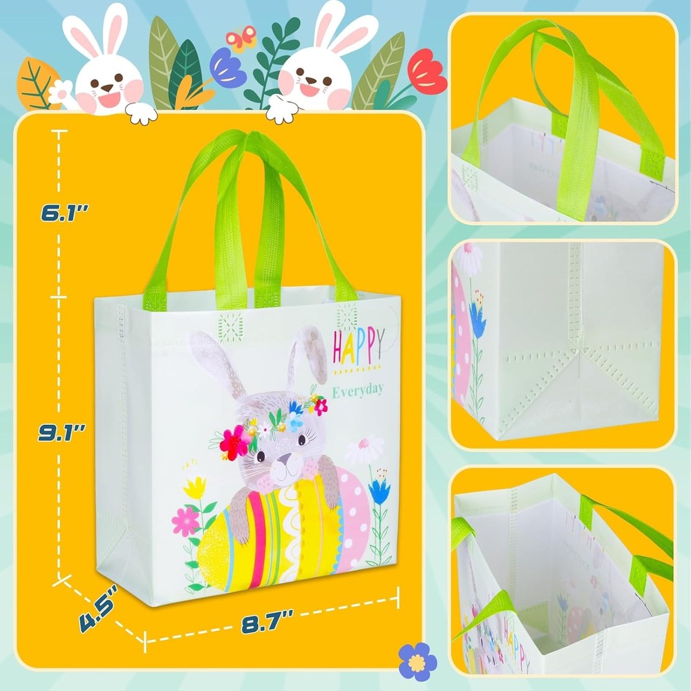 Exun Happy Easter Gift Bags with Handles, Bunny Carrot Chick Designs, Reusable N