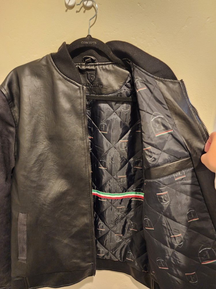 Leather Jacket with Suede Sleeves and Accents. Two outer pockets and one inner chest pocket. Lined in brand fabric, F Collections. Only for U.S. buyers.