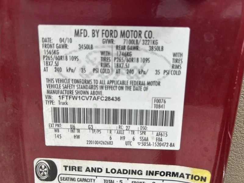 F150 2010 Jack 104630827 NO FOAM TRAY NO SPARE TIRE This part requires VIN (Vehicle Identification Number) verification prior to shipping. Please send VIN prior to purchase, or include in your purchase notes. If not, VIN will be requested after purchase, prior to shipping the order. Without VIN verification, orders are subject to seller cancellation. If you have any questions about this part, or any other parts from this vehicle, please click HERE to send us a message . We answer all questions promptly during regular business hours. Monday through Friday 7am-5pm Central Time. Donor Vehicle Information Model: F150 Year: 2010 Mileage: 180000 Stock Number: 1QF013 Specific Part Notes: 000,4DR,JACK & TOOLS Explanation of damage codes in part notes: - Part Fitment Information This part will fit these makes and models with these options If you do not see your vehicle in this list, please click HERE to send us a message so before buying so we can verify if it will fit your vehicle. - Our Promise Our Promise is that you are completely satisfied with every part you buy from Counselman Auto Recycling If you have a problem with the part, changed your mind or the part does not fit, simply let us know. If you need help with how to return an item, send us a message. We are here to help. - Shipping Information This part willl ship with Fedex or USPS with live tracking information. The tracking number will be posted to eBay and you can find it in your item purchase history.