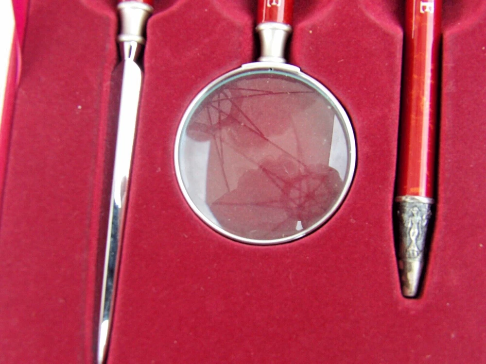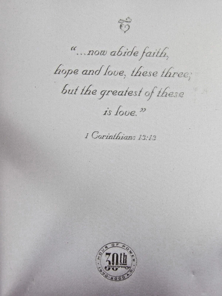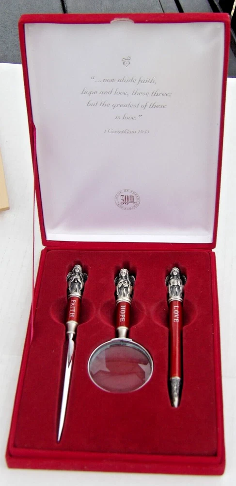" HOUR OF POWER " 1970 ~ 2000 30th ANIVERSARY " CORINTHIANS 13:13 ~ FAITH - HOPE - LOVE ... LETTER OPENER - MAGNIFYING GLASS - PEN, IN DISPLAY CASE ... CASE MEASURES ABOUT 8 X 6 X 1-1/4 INCHES ...