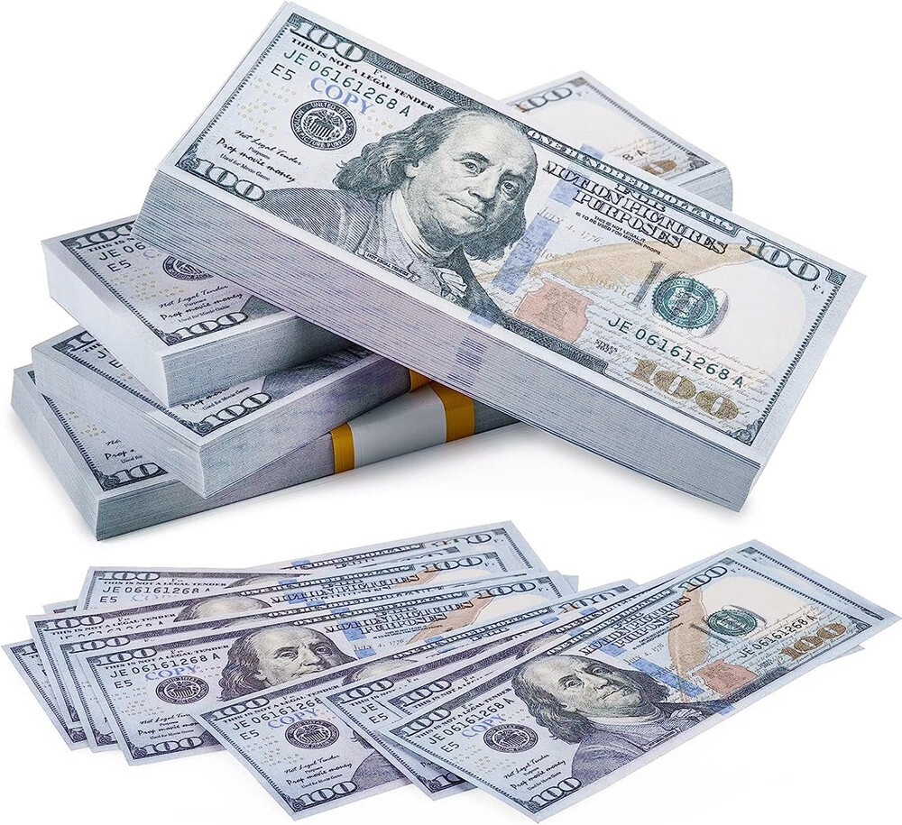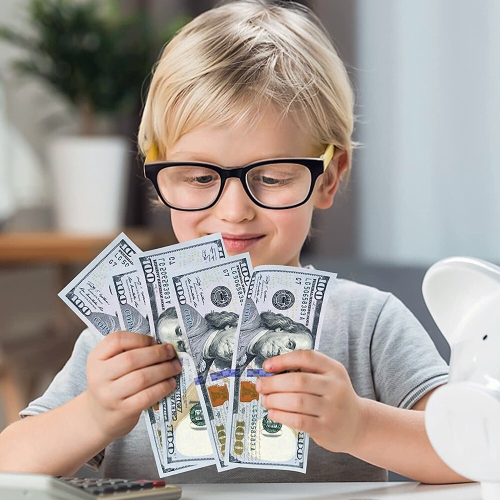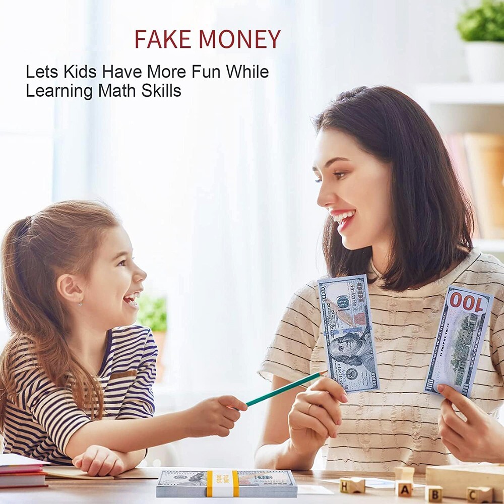 eBay FAKE BANK GAMES PLAY MONEY KIDS CASH PAPER 100 PCS 100 DOLLAR BILLS DOUBLE-LAYER DESIGN BPA-FREE NON-TOXIC NEVER FADE ODORLESS FOR LEARNING DEVELOPING EARLY MATH SKILLS GAME, PLAY PARTY MAGIC FUN ETC. FOR 3-8 YEARS Absolutely High quality product! The paper is a great material! The colors are vibrant! For a distance looks pretty real! Looks very legit and works perfectly for using it in the film! This preschool toys available as a math manipulative, educate kids to understand the meaning and value of bills. It can help children learning some knowledge on financial management and simple counting ability. For 3-8 Years Made of high-quality non-toxic environmentally friendly materials. Each pattern is printed clearly. Paper adopts a double-layer design. Sturdy and thick and not easy to tear. Effectively improve kids hand-eye coordination and brain computing ability. Help them understand the monetary value of common items in life, such as toys, candy, fruits, clothes and so on. Makes a special gift for kids aged 3 to 6 on Birthday, Christmas and Hallowmas. Also great supplies for teachers, Classroom games, Preschool, kindergarten, home school. Size packed: 7.9 x 6.1 x 1 inches