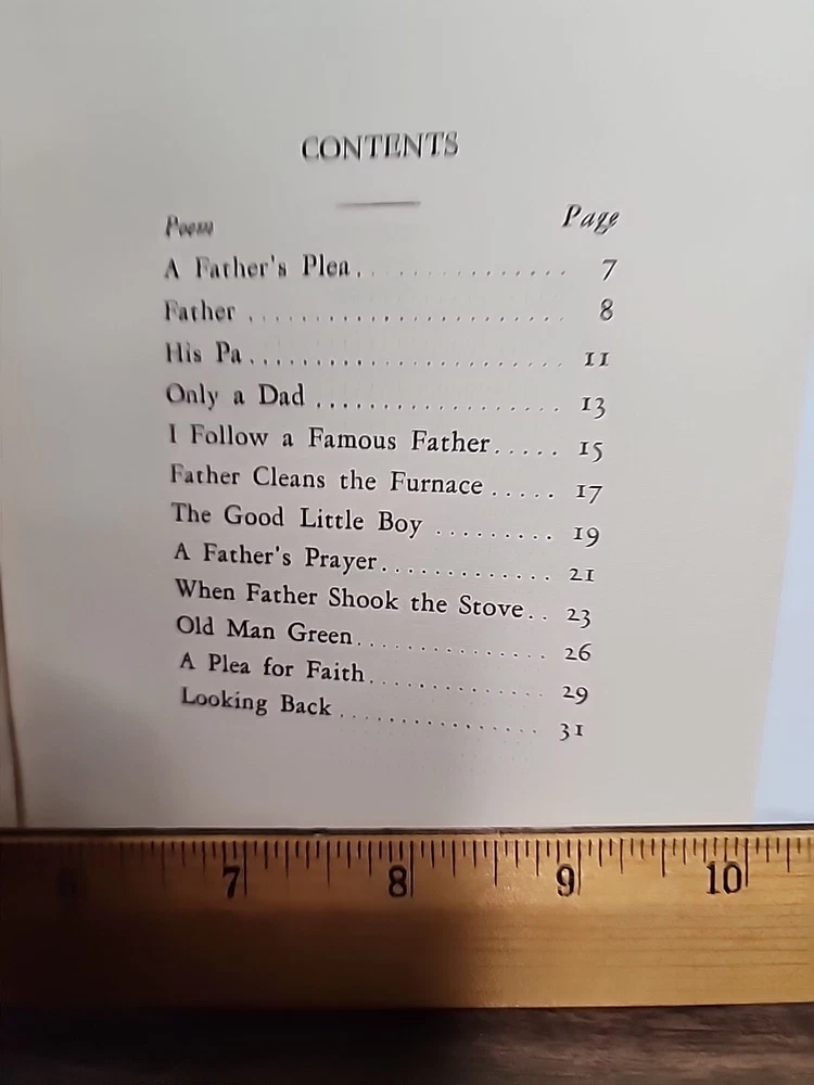 This vintage hardcover book titled "FATHER" by Edgar A. Guest was published by Reilly & Lee Company, Chicago, Illinois, in 1930. The book is a collection of inspirational poetry that focuses on the topic of family and fatherhood. It features illustrations that bring the poems to life and make them easy to understand. The book is written in English and has a total of [insert number of pages] pages. It is a great addition to any collection of antique and collectible books, especially for those who are interested in art and culture. This book is perfect for children and young adults who want to learn more about poetry and the importance of fatherhood. It is a timeless piece that will continue to inspire generations to come.