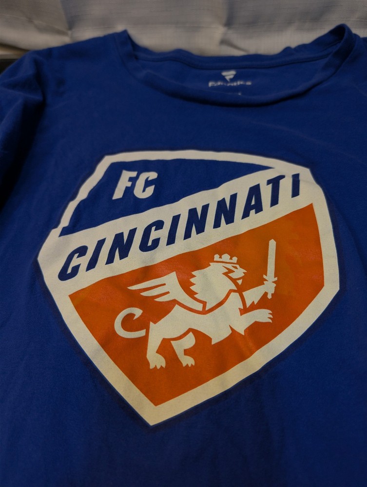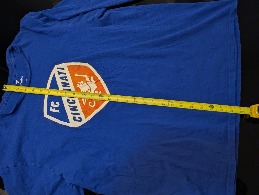The FC Cincinnati Men's Fanatics Blue Primary Team Logo Long Sleeve T-Shirt in size XL is a stylish and comfortable shirt perfect for male fans of FC Cincinnati. Made by Fanatics Branded, this shirt proudly displays the team's logo and is designed for MLS soccer enthusiasts. The blue color and long sleeves make it a versatile piece of fan apparel that can be worn to games or everyday to show support for FC Cincinnati.