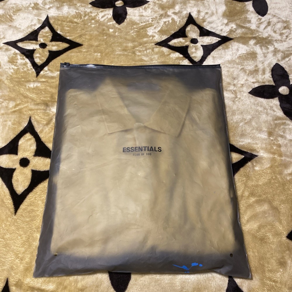 HomeFEAR OF GOD ESSENTIALS LIGHT TUSCAN POLO SHIRT,SIZE MEDIUM ( VELOUR TYPE FABRIC)