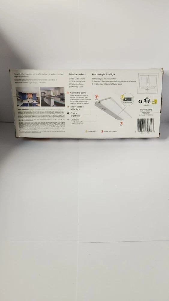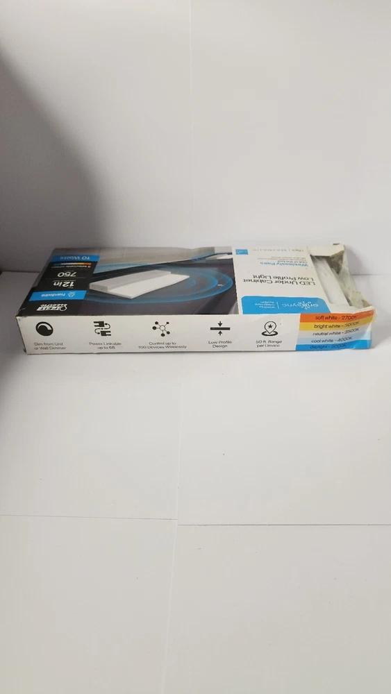 OPEN BOX ( LIGHT ONLY ) Brighten up your under cabinet with this Feit Electric Onesync LED light. The 9.5" LENGTH light is designed for easy installation and features a low profile design that fits seamlessly under your cabinet. The white color of the light adds a modern touch to any kitchen or workspace.