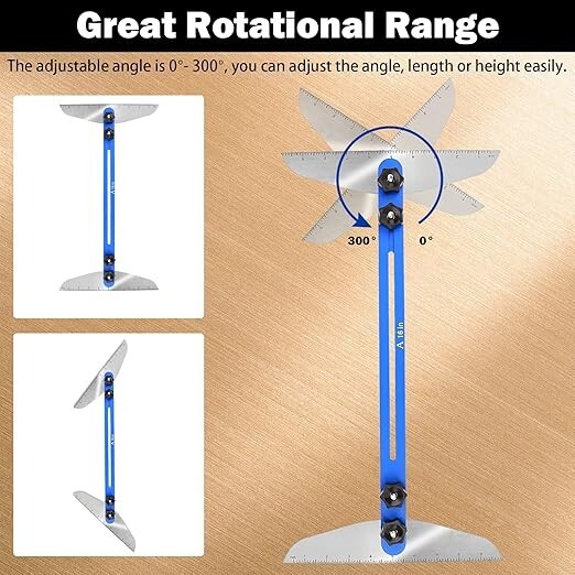 UNIVERSAL STAIR TREADS GAUGE TEMPLATE TOOL - Stair tread template tool enables the treadle installer to measure the length and angle easily and accurately without a measuring tape. Easy to use and save plenty of time for measurement. No more shoddy stairs after easy operation. ADJUSTABLE ANGLE - Stair measurement layout tool works well to measure stair treads, risers and shelves. The adjustable angle is 0°- 300°, you can adjust the angle, length or height according to your need. Shelf layout tool & stair tread jig can be widely used in many woodworking environments, specially designed for laying out wooden stair treads, wooden floors, closet and windowsill. Nice choice for DIY woodworking. PREMIUM QUALITY - Stair jig tool are made of superior aluminum alloy, durable and wear resistant. The surface is treated by anodizing to prevent discoloration in high-temperature environments or wet condition. The scale is etched by laser for better accuracy. Bolts are portable and reusable. Complete kit for direct fit! EASY TO USE - Adjust the 4 knobs and you can change the length of the stair measuring tool easily and secure the tool. Package includes two sets of extension parts with a length of 16 inches (No.A), 12 inches (No.B) and 8 inches (No.C). You can freely combine according to your needs. while measuring the length and width of the wooden board, the ruler on both sides of the stair tread tool can also change the angle to meet the shape of the stair corner. BUY WITH CONFIDENCE - Shelf scribe tool for stairs comes with 1-YEAR Warranty, if you have any questions while using this stair tread with scale to measure the stairs, risers, shelves, windowsills, closets and cabinets, please don't hesitate to contact us for a replacement. We will reply your email as soon as possible!