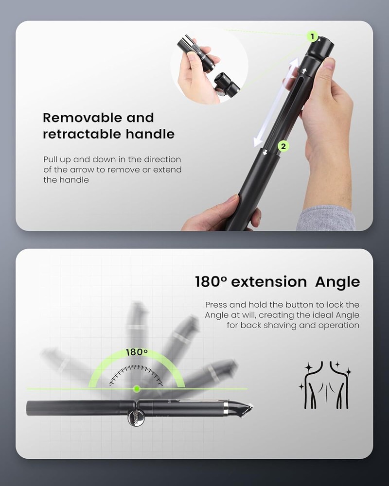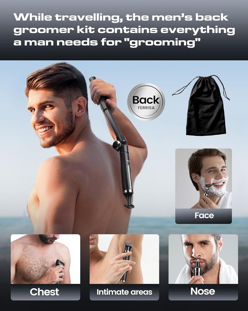 FERRISA Back Shaver for Men, Electric Shavers for Men with Detachable and Extendable Long Handle, 5-in-1 Mens Back Shaver with Travel Lock, Self-Service Body Hair Trimmer for Wet or Dry Shaving Black Multi-functional self-service back shaver:FERRISA back shaver for men includes 5 removable replacement heads: beard trimmer, body hair trimmer, back razor, nose and ear hair trimmer, manual razor.5-in-1 men's back groomer kit contains everything a man needs to "groom" his back Retractable and Removable Extension Handle:Men's electric back shaver is designed with a retractable and removable extension arm, and the arm can be adjusted at an angle of 180°, which allows you to easily remove hard-to-reach areas in the lower and middle part of the back by yourself, and creates an ideal angle for back shaving and maneuvering IPX7 Waterproof & 2 Speeds:This electric back shaver is designed with IPX7 waterproof, the body is washable and can be used wet or dry. With two speeds to choose from, you can select the corresponding speed to trim according to the thickness of the hair, and the powerful motor will not pull the hair during the trimming process, providing you with a comfortable shaving experience Travel-friendly design:This men's electric back shaver is perfect for your travel needs. Its compact size, lightweight construction and detachable handle make it easy to pack and carry, ensuring you stay clean and well-groomed wherever you go Travel Lock:This mens back shaver is designed with a travel lock, when the travel lock is triggered, the red light blinks and shrinks for 2 seconds, press and hold the lock button for more than 3 seconds to lock/unlock. The device will not run in the locked state, which helps to minimize the accidental start-up of the device due to accidental touch when traveling FERRISA Back Shaver for Men, Electric Shavers for Men with Detachable and Extendable Long Handle, 5-in-1 Mens Back Shaver with Travel Lock, Self-Service Body Hair Trimmer for Wet or Dry Shaving Black Multi-functional self-service back shaver:FERRISA back shaver for men includes 5 removable replacement heads: beard trimmer, body hair trimmer, back razor, nose and ear hair trimmer, manual razor.5-in-1 men's back groomer kit contains everything a man needs to "groom" his back Retractable and Removable Extension Handle:Men's electric back shaver is designed with a retractable and removable extension arm, and the arm can be adjusted at an angle of 180°, which allows you to easily remove hard-to-reach areas in the lower and middle part of the back by yourself, and creates an ideal angle for back shaving and maneuvering IPX7 Waterproof & 2 Speeds:This electric back shaver is designed with IPX7 waterproof, the body is washable and can be uséd wet or dry. With two speeds to choose from, you can select the corresponding speed to trim according to the thickness of the hair, and the powerful motor will not pull the hair during the trimming process, providing you with a comfortable shaving experience Travel-friendly design:This men's electric back shaver is perfect for your travel needs. Its compact size, lightweight construction and detachable handle make it easy to pack and carry, ensuring you stay clean and well-groomed wherever you go Travel Lock:This mens back shaver is designed with a travel lock, when the travel lock is triggered, the red light blinks and shrinks for 2 seconds, press and hold the lock button for more than 3 seconds to lock/unlock. The device will not run in the locked state, which helps to minimize the accidental start-up of the device due to accidental touch when traveling × × × × × × × × × × Buy now and save! Shipping info Click the Shipping & Payments tab above the listing description for more info Click the Shipping & Payments tab above the listing description for more info! Additional delivery notes PICK UP OPTION Sorry, our items are NOT available for pick-up. PAYMENT Immediate payment is required upon selecting "Buy It Now" or upon checking out through the cart. We accept payment via U.S. PayPal accounts and all Major Credit Cards, Debit Cards & Google Pay. We are legally required to collect sales tax in those states and localities where we maintain a physical presence (nexus). The applicable amount of sales tax charged to an order will be calculated based on the shipment destination's state and local sales tax laws. Thank you for shopping with us on eBay! Additional Information No additional information at this time Ask seller a question You might also like Jingle all the Way! 4.5" Square Shadow Box Rite Lite 2 pack wooden Dreidel Rite Lite The Dreidel Game Chanukah Painted Wooden Dreidels Set of 4 - Hanukkah Aurora Marius Nutcracker Bear Blue Contact To contact our Customer Service Team, simply click the button here and our Customer Service team will be happy to assist. Ask seller a question © Morning Glory Resale Shipping & Payments Click the Shipping & Payments tab above the listing description for more info Payment Accepted Payment Methods Immediate payment is required upon selecting "Buy It Now" or upon checking out through the cart. We accept payment via U.S. PayPal accounts and all Major Credit Cards, Debit Cards & Google Pay. We are legally required to collect sales tax in those states and localities where we maintain a physical presence (nexus). The applicable amount of sales tax charged to an order will be calculated based on the shipment destination's state and local sales tax laws. Thank you for shopping with us on eBay! Returns Returns are not accepted Seller will pay for return shipping. eBay integration by