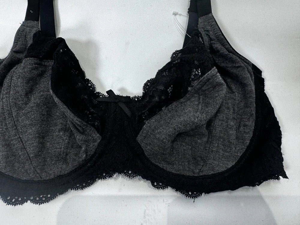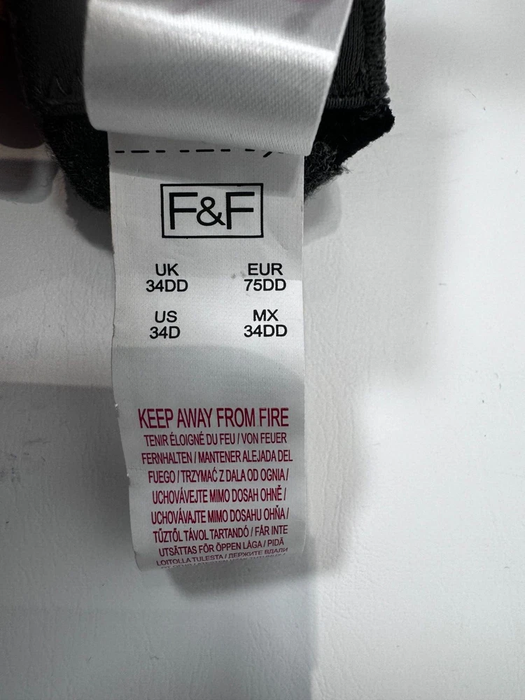 Add some sophistication to your lingerie collection with this F&F balconette bra. The bra features a beautiful lace detail and embroidered accents in black and grey colours. The cotton material makes it comfortable to wear all day long, while the underwire provides the necessary support for a perfect fit. The hook and eye closure and adjustable bra strap make it easy to wear and adapt to your body shape. This bra is perfect for women who love the balconette style, and the unpadded feature gives a natural look. Get the perfect size with the band size of 34 and cup size of DD. Add this classic piece to your collection and enjoy the comfort and elegance.
