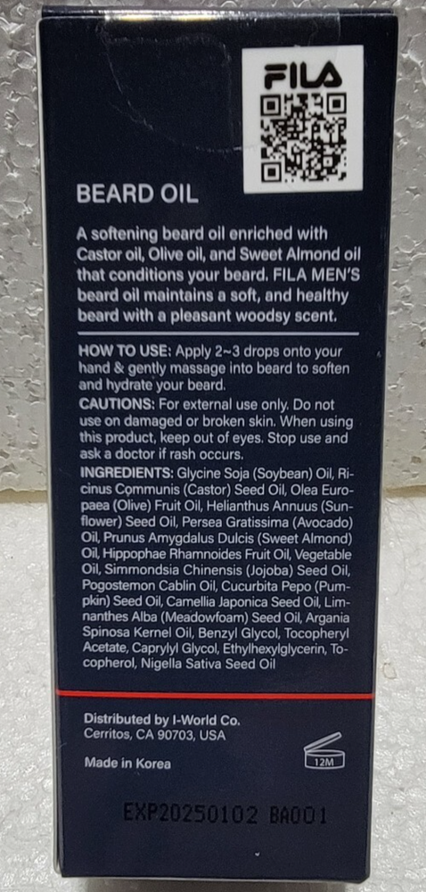 Hello, I'm a seller focusing primarily on men's fashion, personal care and other related items. This time I'm offering: FILA MEN'S SOFTENING+CASTOR SEED OIL BEARD OIL, 50 ml, FOR MEN, GREAT ITEM! Features: Made in Korea Authentic Brand 1.69 oz. All occasion Beard care I'm an honest seller and looking to be your your favorite men's fashion store at affordable prices and with a good selection. Please bid with confidence and feel free to check my other auctions. Payment is expected within 3 days of closing deal. Bid with confidence and good luck!