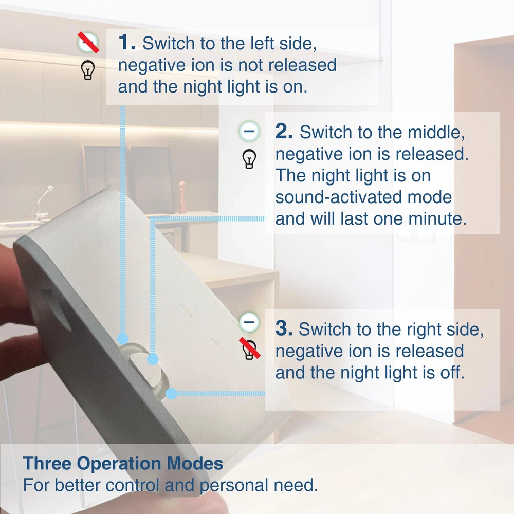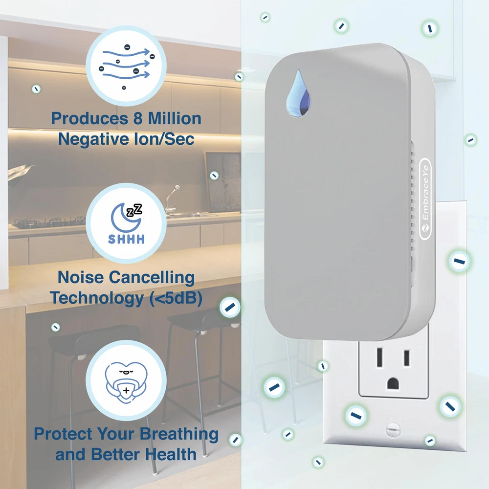 【3RD GENERATION NEGATIVE ION TECHNOLOGY】- Using 3rd generation negative ion generator to produce as many as 3 million negative ions/sec into a wider space, making it perfect for reducing airborne impurities, odor, pet smell, cooking fumes and more. 【PLUGGABLE AND EASY TO USE】- Its user-friendly design makes it the perfect air cleaner. Simply plug it into any standard outlet to enjoy clean fresh air. 3 different operation modes to fit any environment. 【ECONIMICAL】- No filter needed. The filterless technology purifies your air without any expensive maintenance or cleaning. 【QUIET OPERATION & SAFE】- This air ionizer operates without fans, motors, or electromagnetic radiation, making it ideal to fall asleep to. No UV nor radiation pollution and it is safe for chidren and pets. 【IDEAL FOR EVERY ROOM】- We suggest using our FILTERLESS NEGATIVE ION AIR IONIZER FOR HOME PLUG IN at least per bedroom, bathroom, dining room, living room, kitchen, garage, basement, gym and office to ensure best results.