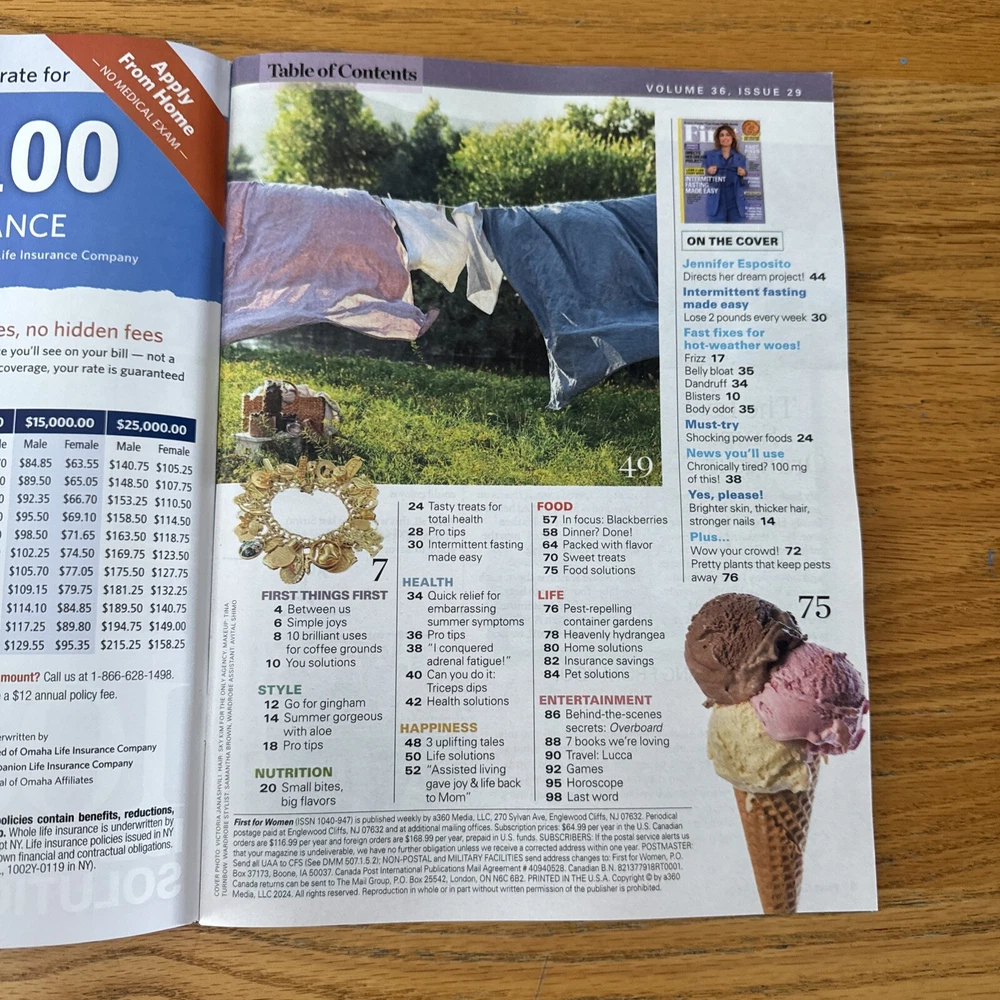 Discover the latest edition of FIRST FOR WOMEN Magazine, featuring Jennifer Esposito on the cover and a focus on women's health, women's interest, and women's studies. First For Women speaks directly to women about their real-life needs, concerns and interests. Stay fit and healthy, look your best, improve your relationships and parenting skills, get decorating and cooking tips. As pictured - I use my own photos. Please look at pictures closely as they are part of the description. Smoke Free Environment US: Fast Shipping with Tracking Provided International: Via eBay International Shipping Program Only Make sure your mailing/shipping address is correct before you submit your order. I won't reship an item for free. This item will be packed with extreme care to insure a safe arrival to its new home. Items may ship with recycled materials. Feedback is very important to us. We strive for 5 stars! Once you receive your item, we ask that you leave feedback for that item. This allows us to know if you are happy with your transaction. In return we will leave feedback for you. Check Out My Other Listings