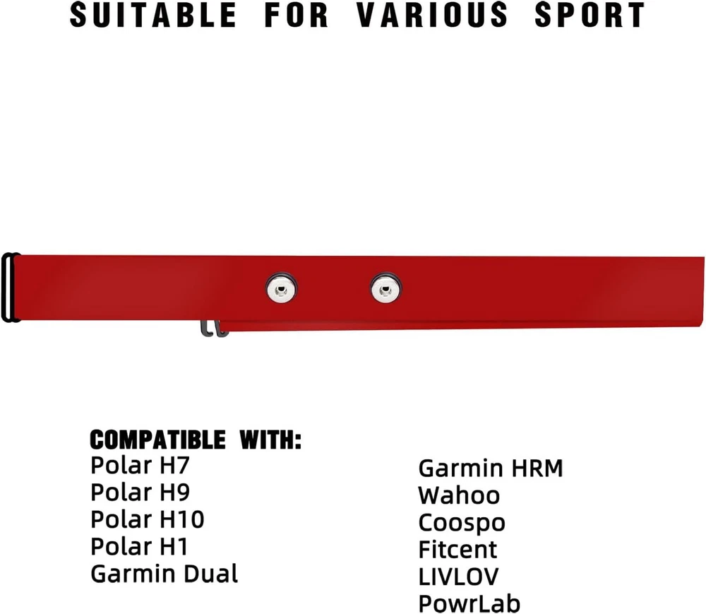 FITCENT Replacement Chest Strap Compatible for FITCENT Wahoo Polar H10 H9 H7 Garmin Powr Labs XOSS LIVLOV Heart Rate Monitor! This heart rate monitor soft strap designed for ANT+ and Bluetooth chest heart rate sensor include Polar H10 H9 H7 FITCENT Wahoo Garmin Powr Labs XOSS LIVLOV and More Brand! The smart fusion of soft fabrics and adaptive electrodes make it extremely sensitive to your heart’s electrical signals, so the heart rate sensor can pick up heart rate quicker and more accurately. Wearable size from 24” to 40” with a max stretch to 61”. The space of two snap button is about 50mm. Wear Comfortable: Soft, lightweight and easy to wear is the most important theme of this product. Please frequently use your heart rate monitor every day , recommended to replace the strap every 3-6 months, to maintain high accuracy in measuring the heart rate signal. Package List: One Piece heart rate monitor replacement chest.