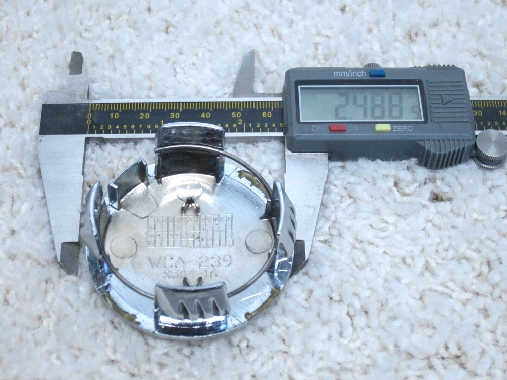 Outside Diameter: Approx. 2- 1/2 inches Finish: Glossy Manufacturer Part Number: WCA-239, S504-16 Material: Chrome, Plastic Features: Car Wash Safe, Easy to Install, Lightweight Emblem Type: Toyota gtin13: Does not apply Placement on Vehicle: Front, Left, Rear, Right UPC: Does not apply Type: Wheel Center Cap Number in Pack: 1 OE/OEM Part Number: WCA-239 Seller Notes: “Miner marks / Good clips” Color: Chrome Modified Item: No Brand: Unbranded Custom Bundle: No