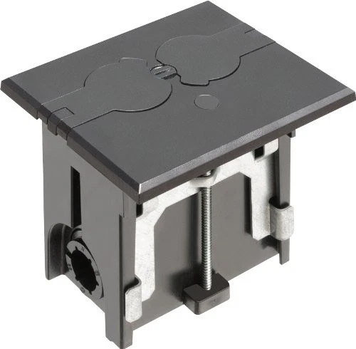 FLBAF101BL-1 Adjustable Floor Box Kit with Outlet and Flip Plate, for Installed Floors, 1-Gang, Black, 1-Pack. 1-Gang Black Adjustable Floor Box Kit with Outlet and Flip Plate for Installed Floors. Cover gasket prevents water intrusion, plate protects outlet when not being used. We have a floor box for any jobsite; this is designed for installed floors, we also make them for new concrete. Oversized covers hide miscut carpet for floor. For a neat, convenient way to put a receptacle(outlet) in the floor. Includes Adjustable Floor Box, duplex receptacle, back plate, gasketed rectangular cover plate with flip lids, (5) #6-32 cover plate screws, (2) #6 drywall screws, (1) each NM94 cable connector and NM900 plug and (1) cap for adjustable screw hole in cover plate.. 1-Gang Black Adjustable Floor Box Kit with Outlet and Flip Plate for Installed Floors Cover gasket prevents water intrusion, plate protects outlet when not being used Box is designed for installed flooring, we offer floor boxes for new concrete and nearly any jobsite Oversized covers hide miscut carpet for floor For a neat, convenient way to put a receptacle(outlet) in the floor Non-Metallic Oversized covers hide miscut carpet for floor