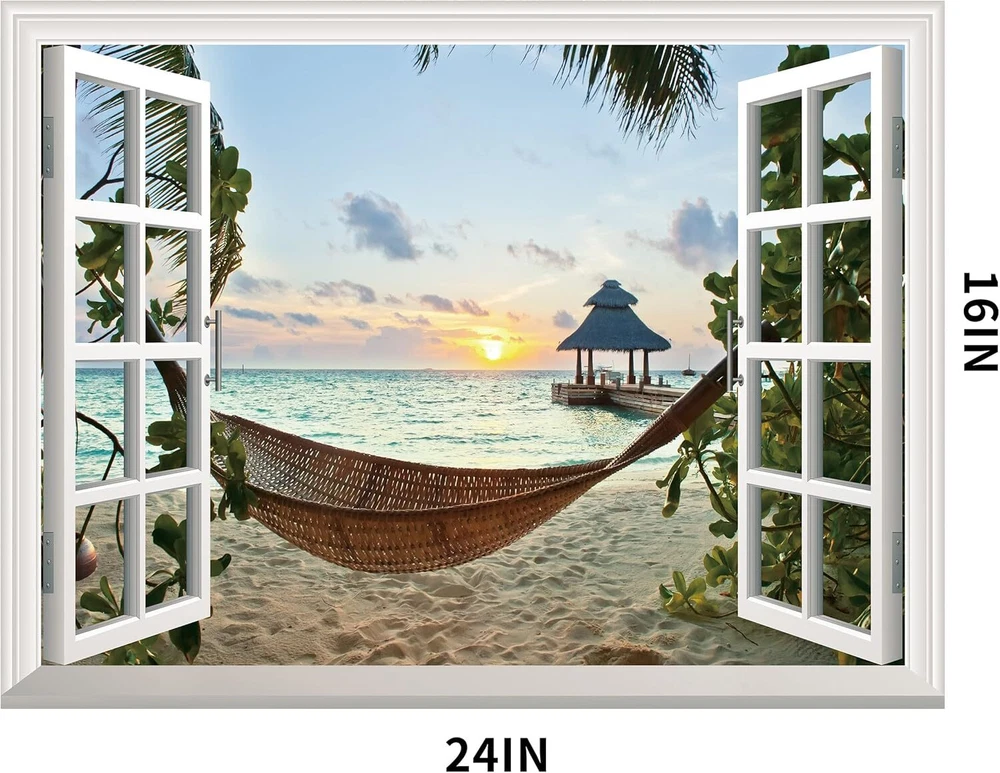 FLFK Fake Window Wall Sticker - Sunset Beach Faux 16"x24", Gxl541 Product Details Brand: FLFK Color: Gxl541 Item dimensions L x W x H: 24 x 16 inches Recommended Uses For Product: Wall Theme: Beach Cartoon Character: Bubble Special Feature: Waterproof, Sun Protection, Oil resistance, Stain resistant Number of Pieces: 1 Style: 16"x24" Age Range (Description): Kid Reusability: Single Use Item Form: Rectangular Pattern: Geometric Indoor/Outdoor Usage: Indoor Water Resistance Level: Waterproof Number of Items: 1 Target Audience: Children Item Weight: 3.2 ounces Manufacturer: FLFK Country of Origin: China Item model number: GXL541 Is Discontinued By Manufacturer: No Surface RecommendationMaterial: WallVinyl ShapeUnit Count: Rectangular1 Count FLFK Fake Window Wall Sticker: Transform any space into a bright and airy room with a faux window insert. Wall Mural or Decals: Stick and peel design makes installation a breeze with no damage to surfaces or walls. Wall Decor: Create an illusion of depth or an outdoor view with a faux window that looks incredibly realistic. 24"x16" size fits perfectly on most walls for a quick and easy way to revamp any room. Please Note: Due to screen color settings, actual colors may vary slightly from the picture.