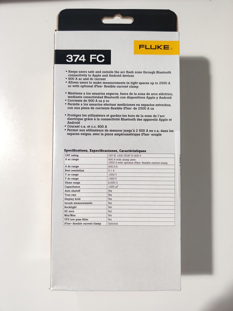 What’s in the box Clamp Meter Test leads Soft case Users’ manual TPAK magnetic hanging strap Fluke 374FC True-rms Clamp Meter Rugged, reliable and ideal for commercial and industrial applications The Fluke 374FC True-rms Clamp Meter combines functionality with form to create a powerful troubleshooting clamp that is easy to handle. The Fluke 370FC Series offers the only clamp meters in the market to offer a flexible current probe, logging and safe remote measurements, all in one tool. True-rms voltage and current for accurate measurements on non-linear signals Logging capabilities help to troubleshoot intermittent faults Bluetooth connectivity helps keep users outside the arc flash zone Use with the iFlex to make measurements in tight locations Transmit measurements wirelessly via the Fluke Connect app or Fluke Connect Assets software Create reports and share with your team without leaving the field Record measurements wirelessly eliminating transcription or reporting errors