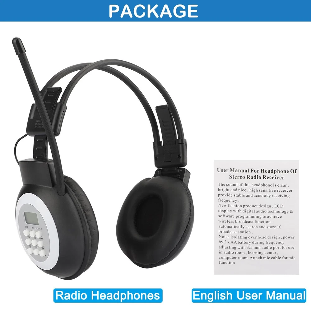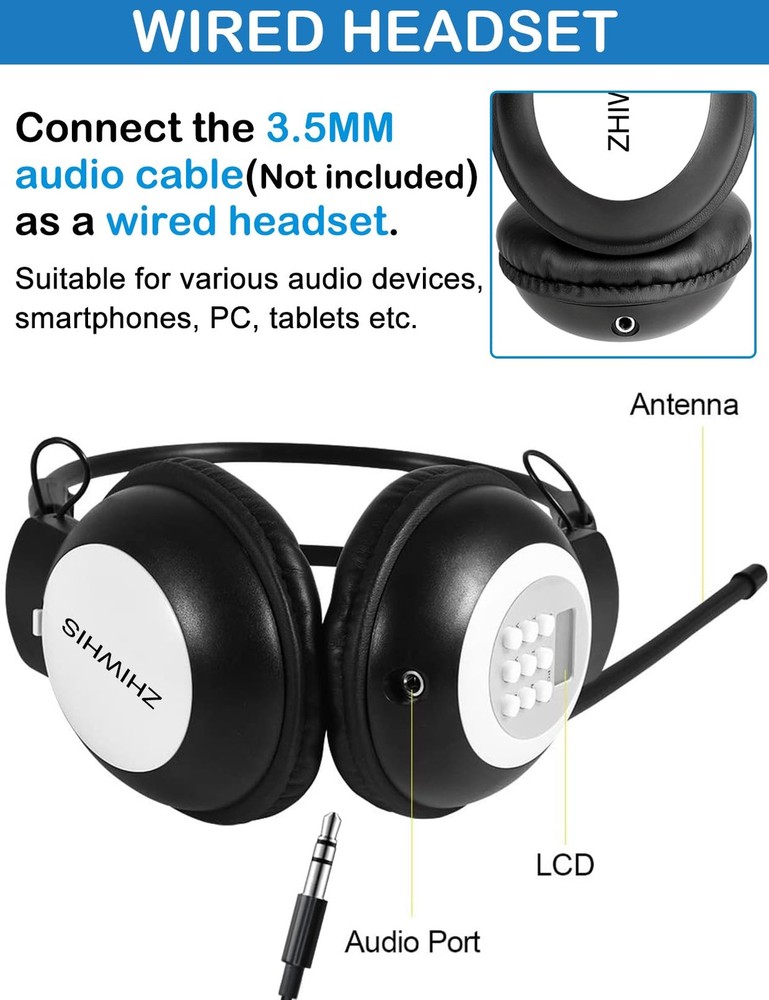 FM Portable Radio, Stereo Headsetwith LCD,Over Ear Foldable, Pocket Walkmen Conference Receiver, Small Wireless/Wired Headphones Operated by 2 AA Batteries for Walking/Running ZWS-308 Product Features [DIGITAL FM POCKET RADIO] - DSP digital processing technology chip is adopted, frequency modulation signal reception is stable. Connect the 3.5MM audio cable(no included) as a wired headset. [PORTABLE CONFERENCE/REHEARSAL FM RECEIVER] - The machine is a frequency modulated receiver designed according to meeting/rehearsal usage.This is a stereo radio, beautiful appearance, pocket size,sonorous sound. [BATTERY OPERATED & SHUTDOWN MEMORY FEATURES] - Powered by 2 x AA battery (not included).Highly recommend to keep one for emergency radio. [PORTABLE & EASY TO USE] - FM radio headphones can be used together with FM transmitter for simultaneous interpretation, Assisted Listening, Church, Tour Guide. With foldable design , for easy to carry it outside for walking, jogging, camping etc. Shipping: Shipping is complimentary within the lower 48 US States. We Do Not Ship to PO/APO Boxes, HI or Alaska We Do Not Ship Outside of the Continental US All items ship within 24-72 hours of Payment For large items that require Freight shipping a valid phone number is required to call and schedule your delivery Terms of Sale and Feedback: Feedback is extremely important to us and eBay If you are satisfied with our transaction, please take a moment to leave Positive Feedback. YOUR Satisfaction is our #1 Priority! If there are any issues, PLEASE contact us BEFORE leaving a neutral or negative rating so that we may resolve any concerns. We PROMISE we can make you happy if you give us a fair chance. Returns / Concerns: All items qualify for returns within 14 - 30 days of receipt. Buyer is responsible for return shipping on any item that is not damaged Please be sure this is an item you want before making your purchase. Customer Satisfaction is our TOP priority! All items are IN STOCK at time of listing. Inventory on eBay changes constantly and it is impossible to maintain a perfectly accurate count of all items. Please do not penalize us if we have to issue you a refund! Thank You For Your Business!