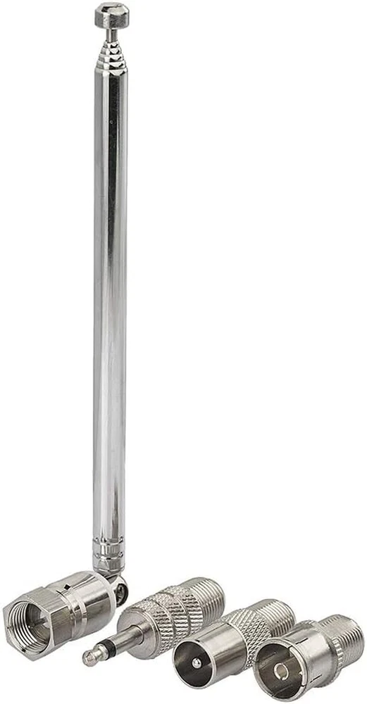 Type: 75 Ohm FM Dipole indoor antenna with type F connector to enhances FM stereo reception Length:13.5CM / 5.3" included "F" connector ,Extend length:51CM / 20in included "F" connector ,Material: Steel, Brass Installation: F type male connctor easy for install Simply screw in it to the intended female connctor antenna connection | Stretch the end of the antenna as far as possible away from the device for the best reception. Application: Fit for FM Radio / DAB / AV Receiver,like Tivoli Audio Sangean WR-11,Sangean WR-2,Sangean WR-12 ,Harmon Kardon Musicsystem radio,SONY, YAMAHA, DENON, TEAC, PIONEER, Panasonic, ONKYO, MARANTZ, SANSUI,Sangean WR-15WL,WR-11SE, WR 22WL,HDR-18, ect Package include: 1pcs telescopic antenna + 1pcs F female to PAL male connector + 1pcs F female to PAL female connector + 1pcs F female to 3.5mm connector Product Description Product Details Sections: 6-Sections Length:13.5CM / 5.3" Extend length:51CM / 20" Material: Steel, Brass Antenna connector: F male connector Excellent fm radio antenna replacement telescopic stainless steel fm radio antenna for table top av home stereo receiver radio receiver indoor and more. Product Application and Installation 1.Great extending antenna for FM Radio. Improved reception in poor reception area 2. Universal compability: this r adio antenna comes with Male "F " connector and 3 types of adapter, PAL male & PAL female & 3.5mm, Widly work with these Radio, HiFi and Mini system: Bose Wave Sangean Cambridge Audio One Pure Evoke Tivoli Audio Demon Roberts Sony Marantz Yamaha Hitachi hi-fi DAB Radio Stereo Receiver etc. 3.Easy Installation comp ared with wire coax antenna, the telescopic radio antenna is more easy to install. You only screw or plug to the antenna socket. With this antenna, you will have really good tiding.