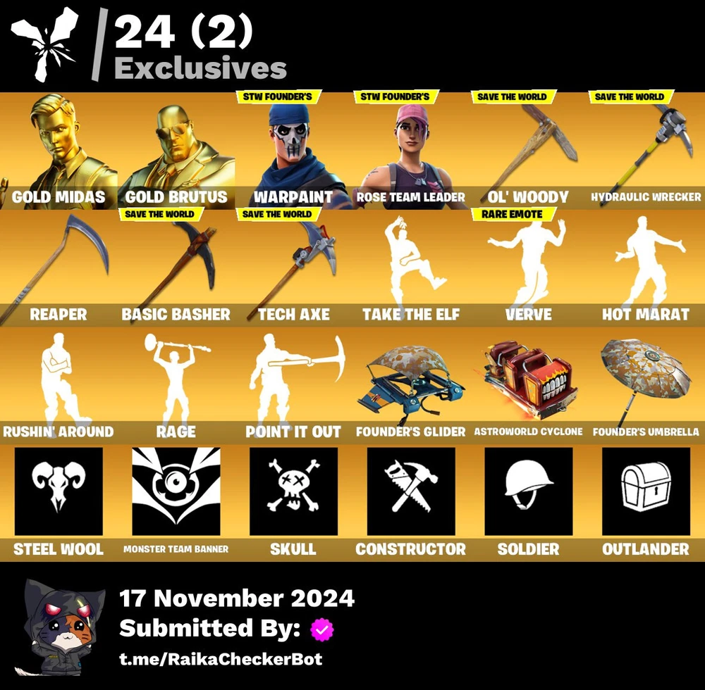 🎮FN Gold Midas,Drift, Point it out, Calamity, Tony, Founders Edition 125 Skins✅