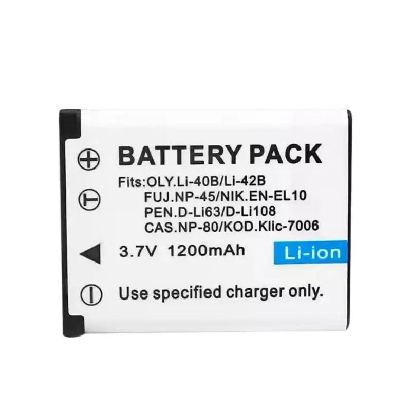 Compatible Series: LI-42B Nik EL10 Kod K7006 Fuji NP45 Cas NP80 Model: Fuji NP45 UPC: Does not apply Country of Origin: China Capacity: 1200mAh gtin13: Does not apply Charger Included: No Type: battery Compatible Brand: For Fujifilm Chemical Composition: Li-Ion MPN: BA-FNP45 Brand: Unbranded