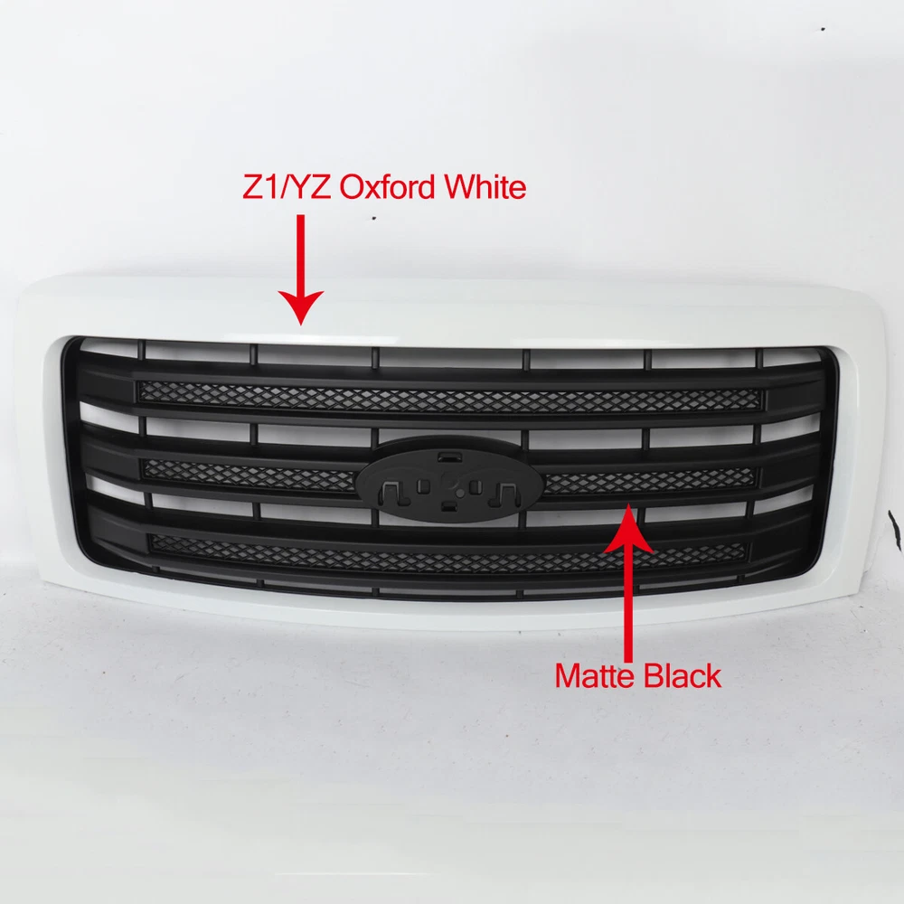 FOR 2009-2013 14 FORD F150 F-150 FRONT GRILLE GRILL Z1 OXFORD WHITE 3-BAR STYLE Welcome to my eBay Shop. If you are satisfied with the item, please take a moment to reward our efforts by leaving us a "POSITIVE FEEDBACK" and perfect "5 STAR" scores. If you have any question about the product, pls contact us firstly, so that we can satisfactorily address your concerns and rectify any issues. Fitment: Fits For Ford F-150 F150 2009-2014 Model. If you not sure the item can fit for your car or not,please contact us and attach the VIN Number of your car,and take a picture to show me your car, we will check it for you, thanks. Package Content : 1x Front Bumper Grille (Without Emblem) Specification: -Product Name: Front Bumper Grille Grill -Condition: 100% Brand New -Style: Factory Style -Material: ABS Plastic -Color: Z1/YZ Oxford White & Matte Black(As the picture show) -Placement on Vehicle:Front, Upper, Center -Fitment Type: Direct Replacement Feature: -100% Brand New in the box with manufacturer packaging, never been installed before. -Enhance the style or function of the original grille. -Factory bolt-on OE fitment, no vehicle modifications are required. -Made from high grade OE comparable materials to withstand rough road wear and the test of time. -Not Genuine Part. Just Aftermarket product. -This product perfectly conforms to the automobile design concept, It will make your car more beautiful,have a better driving experience. Note: -Please allow 1-3 mm differs due to manual measurement. -Due to the different display and different light, the picture may not reflect the actual color of the item. -Instruction is not included. We strongly recommend that installation shall be done by professional people. -Our warehouses are located in the U.S. West, U.S. South and U.S. East, and shipments will be made according to the principle of proximity to the customer's address. We accept any of the following payment methods: Visa Mastercard PayPal Apple Pay (through the eBay app and eBay's mobile website only) Google Pay (through the eBay app, eBay's mobile website, and desktop) Please sent the payment to us within 4-5 days after the purchase, otherwise eBay will cancel your order. Handing Time 3 Business Days. Orders are shipped usually in 1 to 2 business day , but we do reserve the right to take up to 3 business days for processing before shipping out. Please note UPS ground / Standard does not deliver on Saturday, Sunday, or holidays. USPS does not deliver on Sundays and national holidays. We do not ship on Sunday and holidays. USPS USPS_First Class USPS_Priority Mail USPS_Standard Shipping UPS UPS_SurePost UPS_Ground FedEx FedEx_Ground Flat Rate Freight Flat Rate Freight ( For oversize package) 1.All items sold by us are being described to the best of our abilities, as accurate as possible, and with utmost conscientiousness on our part. However, to avoid any potential oversights, we respectfully request your assistance in helping us to make this a mutually satisfactory transaction by THOROUGHLY reviewing item description and photos, and asking all questions PRIOR TO BIDDING. 2.We stand behind the quality of all of our products. All products are double inspected before stocking and dispatching. However, sometimes mistake may slip by and the product may get damaged during the process of delivery. If such trouble occurs to you, please take a minute to refer to the following instruction. 3.If the package arrives at your location with obvious shipping damage (including broken envelop, empty package and etc), please refuse the shipment. 4.If you find the item is defective after you accept the shipment, please save everything that is attached in the package, including all the documents, and contact us immediately, either through eBay message or email address. 5.You should state your item ID, item title and what the damage is clearly in your email. And please be advised that digital photos must be attached to the email you send. 6.And please bear in mind that you should contact us within 3 days since the day you receive the package, or it will be your own responsibility to take the lost of the defective item. 1.Welcom to my Store,more product more surprise. 2.If you like our product,you can add us to favourite seller. 3.And if you want to see more products, you can visit. Fitment: Fits For Ford F-150 F150 2009-2014 Model. If you not sure the item can fit for your car or not,please contact us and attach the VIN Number of your car,and take a picture to show me your car, we will check it for you, thanks. Package Content : 1x Front Bumper Grille (Without Emblem) Specification: -Product Name: Front Bumper Grille Grill -Condition: 100% Brand New -Style: Factory Style -Material: ABS Plastic -Color: Z1/YZ Oxford White & Matte Black(As the picture show) -Placement on Vehicle:Front, Upper, Center -Fitment Type: Direct Replacement Feature: -100% Brand New in the box with manufacturer packaging, never been installed before. -Enhance the style or function of the original grille. -Factory bolt-on OE fitment, no vehicle modifications are required. -Made from high grade OE comparable materials to withstand rough road wear and the test of time. -Not Genuine Part. Just Aftermarket product. -This product perfectly conforms to the automobile design concept, It will make your car more beautiful,have a better driving experience. Note: -Please allow 1-3 mm differs due to manual measurement. -Due to the different display and different light, the picture may not reflect the actual color of the item. -Instruction is not included. We strongly recommend that installation shall be done by professional people. -Our warehouses are located in the U.S. West, U.S. South and U.S. East, and shipments will be made according to the principle of proximity to the customer's address. PAYMENT We accept any of the following payment methods: Visa Mastercard PayPal Apple Pay (through the eBay app and eBay's mobile website only) Google Pay (through the 