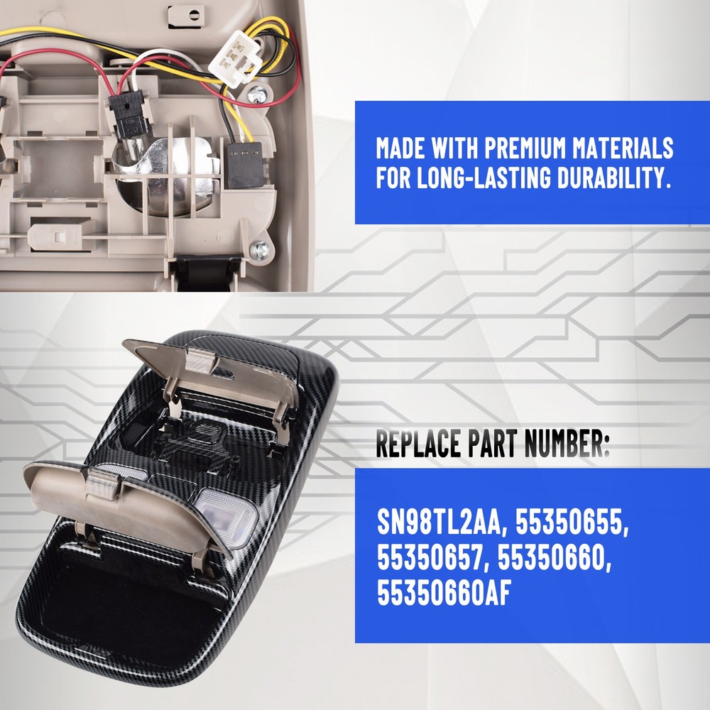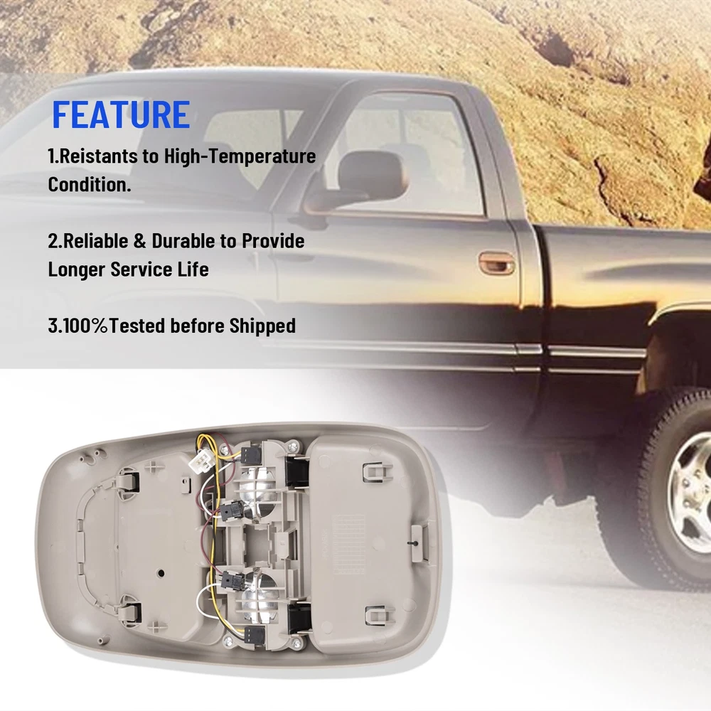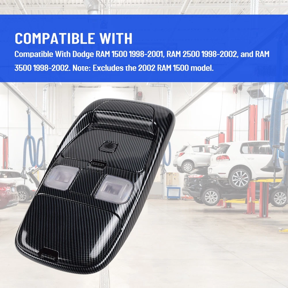 Product Description Front LED Overhead Console Assembly For Dodge Ram 1500 2500 3500 1998-2002 [Upgraded LED Lighting]: Equipped with high-quality LED bulbs, this system delivers bright, yet soft illumination that significantly improves interior visibility, creating a more comfortable and functional cabin environment [Multifunctional]: Featuring LED dome lights and a sunglasses compartment, this overhead console provides easy access to maps or documents during nighttime driving, improving safety for both the driver and passengers Speci fics : Material: ABS Plastic+ LED Condition: 100% Brand New Type: LED Overhead Console Assembly Color:Carbon fibre Fitment Type: Direct Replacement Quantity: 1pcs Manufacturer Part Number:55350657 Placement on Vehicle:Overhead Replace OEM Number: SN94TL2AA , 5013618AA , 5013619AA , L0021202 , 9431809 , 5013606AB, 5013606AA , 5013609AA , 5013608AA , 5013613AA , 5013612AA , SN93TL2AA , SN96TL2AA , SN97TL2AA , SN98TL2AA,55350655 , 55350657 , 55350660 , 55350660AF Fitment For: For Dodge Ram 1500 1998-2001 For Dodge Ram 2500 1998-2002 For Dodge Ram 3500 1998-2002 Package Included: 1x LED Overhead Console Assembly On Mar 13, 2026 at 10:03:05 PDT, seller added the following information: