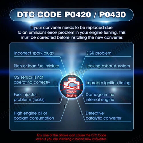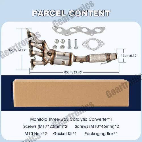 For Ford Focus 2012-2018 2.0L 4Cyl 30580 Exhaust Manifold Catalytic Converter US Key Features: 1. It can convert harmful substances in exhaust gas into harmless substances, and efficiently purify automobile exhaust. 2. Made of high quality stainless steel for increased strength and durability. 3. Durable catalyst material, OEM style replacement. 4. Resistant to thermal shock and cracking. 5. High flow design to provide more oxygen to your engine for an increase in power and performance. 6. Easy installation without cutting or welding. Compatible Models and Years: - For 2012-2017 Ford Focus 2.0L Specifications: * Manufacturer Part Number: 674-137 16647 51153 1414 * Other Part Number: AM-1699064582 * Condition: 100% Brand New * Color: Metallic * Heat Shield Material: Stainless Steel * Substrate Material: Ceramic * Placement on Vehicle: Front * Oxygen Sensor Location: Pre & Post Catalyst * Fitment Type: Direct Replacement * Overall Length: 85cm / 33.46" * Net Weight: 6390g Parcel Content: - 1 * Manifold Three-way Catalytic Converter - 2 * Screws (M17*23mm) - 2 * Screws (M10*46mm) - 2 * M10 Nuts - 1 * Gasket Kit - 1 * Packaging Box Note: 1. Not for Use in California, Maine, Colorado or New York Registered Vehicles 2. Professional Installation is Highly Recommended 3. Installation Instruction is NOT Included Payment Delivery details Return About us Contact us Payment Paypal only , eCheque will be held until cleared, All ship to paypal address. Appreciated for the prompt payment, Contact us if bid by mistake, system open unpaid item automatically. Delivery details Fast shipping by US USPS FAST SHIPPING .It will takes about 2-5 business days for delivery to US, Mostly, all of the products will be shipped out within 1 working day after we receive the payment and your contact phone number. We always ship to your paypal address, so if your shipping address is not matched with it, please note the address you want us to ship in paypal. Why Choose the US Stock? 1. US Local Shipping, No Extra Customs Cost to the US. 2. Fast Delivery: 2-5 Working days Delivery. 3. Best After-Sales Service!!! Return * You can return for refund if you were not pleased with it. Free exchange or resend,if it was damaged or lost in shipping. If any problem with my product, you can contact us, We will do best to solve it. About us We can be reached at ebay message most emails are answered within 24 hours,Our normal business hour is Monday to Friday 9AM to 6PM Los Angeles Times . All emails and orders will NOT be processed during weekends and holidays. Contact us We will work with you to until you are satisfied.we sincerely hope that you can leave us a positive comment,If, for any reason you are not satisfied with your purchase, please contact us through "My Messages" or "Ask Seller Questions" before leaving neutral or negative feedback. Brand Geartronics Manufacturer Part Number EMCC774139 Body Shape Round Catalytic Converter Body Height 4 in / 101.6 mm Catalytic Converter Body Length 4 in / 101.6 mm Catalytic Converter Body Width 4 in / 101.6 mm Connection Type 4 Bolt Converter Quantity 1 Engine Size 2.0L Fitment Type direct replacement Gasket Included Yes Heat Shield Included Integrated Inlet 1 Type 5 Bolt Welded Flange Items Included Mounting Hardware Manifold Inlet Port Shape Round Material Stainless Steel Mounting Hardware Included Yes Outlet Type 2 Bolt Welded Flange Overall Length 35 in / 889 mm Oxygen Sensor Location Pre And Post Catalyst Oxygen Sensor Ports 2 Restricted States California, Colorado, New York, Maine Placement on Vehicle N/a Manufacturer Warranty Lifetime Interchange Part Number 674-137 16647 51153 1414 2012 2013 2014 2015 2016 2017 Ford, Focus FWD 4-Wheel ABS Hatchback Sedan 4 Cyl L4 2.0L S SE SEL, Titanium Exhaust Manifold with Catalytic Converter Assembly California Proposition 65 Warning: Cancer and Reproductive Harm - www.P65Warnings.ca.gov Fitment Verify this part fits your vehicle using the compatibility chart Type Catalytic Converter Features 100% Accuracy of Fit, Clamp-on Connection, Easy to Replace Substrate Material Ceramic