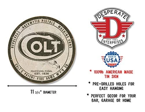 * Brand New Round Vintage Style Tin Advertising Sign *Size: 11.75 Inches *Manufactured With Small Nail Holes For Easy Display *The Outer Edge Is Raised To Add Strength And Sturdiness *High Quality Enamel Based Paint Baked On For Long Life *Proudly Made In The USA smith and wesson, revolvers , glock, hk, ar15, assault rifle molon labe, tactical, mancave, desperate signs, harley-davidson, sig sauer, colt, 1911, 1911 grips, f250, super duty, truck, beer, beer sign, man card, father's day