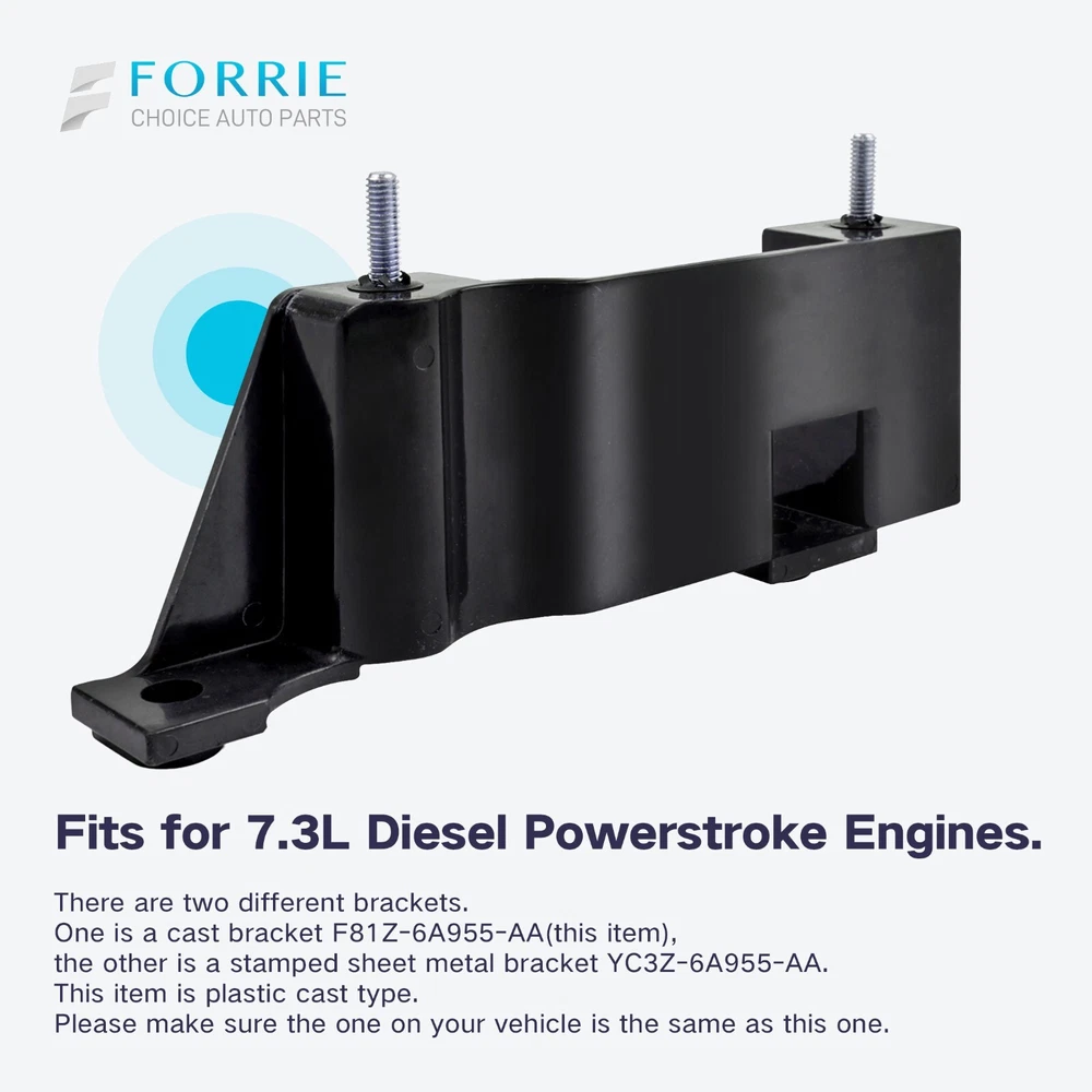 Fits for 7.3L Diesel Powerstroke Engines. There are two different brackets. One is a plastic bracket F81Z-6A955-AA (this item), the other is a stamped sheet metal bracket YC3Z-6A955-AA. This item is plastic cast type. Please make sure the one on your vehicle is the same as this one. Fits for 1999-2003 Ford F-250 Super Duty 1999-2003 Ford F-350 Super Duty 1999-2003 Ford F-450 Super Duty 1999-2003 Ford F-550 Super Duty Fits for 2000-2003 Ford Excursion 1999-2003 Ford E-150 1999-2003 Ford E-250 1999-2003 Ford E-350 1999-2003 Ford E-450 1999-2003 Ford E-550 Fits for 2000-2003 Ford F-650 2000-2003 Ford F-750