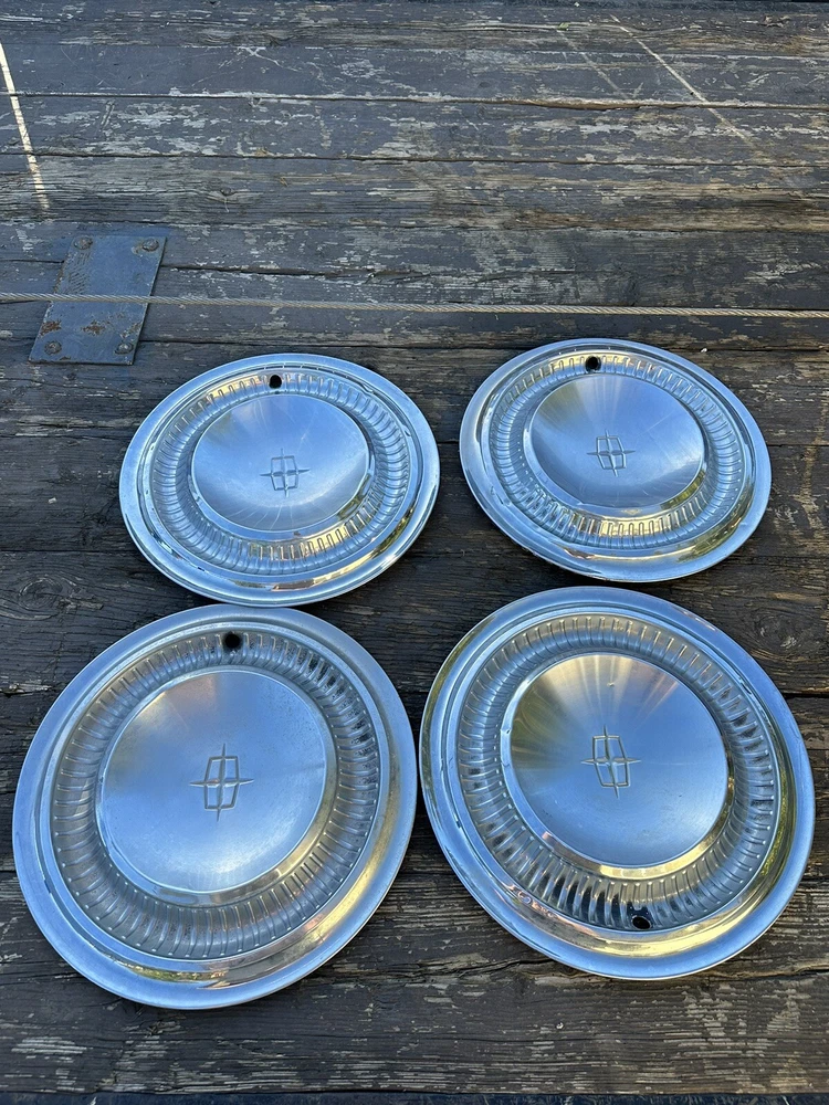 FOUR VINTAGE 1964 1965 LINCOLN CONTINENTAL PREMIER TOWN CAR HUBCAPS WHEEL COVERS. Please see the pictures carefully for condition thanks