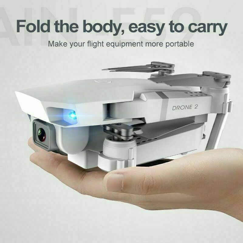 Description: Item NO.: E59 Frequency: 2.4G Channel: 6CH Motor: Brush Motor Quadcopter Battery: 3.7V 600mAh Lipo (Included) Transmitter Battery: 3*1.5V AA Battery ( NOT Included ) Flying Time: about 15mins Charging Time: 120mins R/C Distance: 150m Color: Gray Camera : 2.4G WiFi 4K HD FOV: 120° Wide Angle Quad's Size: 25*17*5.5cm (the arms not folded) 12.5*8*5.3cm (the arms folded) Features: - With foldable arm, small size, easy to carry. - With 2.4G wifi function can be connected APP, APK system to take pictures/video, real-time transmission through the phone camera image - With altitude hold mode function provides stable flight. - With Headless Mode,no need to adjust the position of aircraft before flying . - With One key to return function makes it easily to find the way home. - One Key Takeoff /Landing. One press automatically taking off or landing, the drone will take off or go back to the position where it took off. - 2.4GHz Technology Adopted for Anti-Interference. - The quadcopter fuselage is made of high strength and resistant engineering plastics,lightweight and durable resistance. -Gesture photo/video. Adopting advanced recognition technology, the aircraft makes gestures towards the aircraft during the flight. The aircraft automatically takes pictures after recognizing the gestures, which is more convenient. -Orbit flight. Plan the flight path of the aircraft to focus on shooting Function: Surrounding Flight, Waypoint Flight, Altitude Hold Mode, Headless Mode, One Key Return, One Key Takeoff /Landing, WiFi FPV, Camera/Video, Gesture photo/video, Orbit flight Package Included: 1 x E59 RC Quadcopter 1 x Remote Control 3 x 3.7V 600mAh Lipo Battery 1 x USB Charging Cable 4 x Protection Cover 2 x Spare Blades 1 x Screwdriver 1 x User Manual