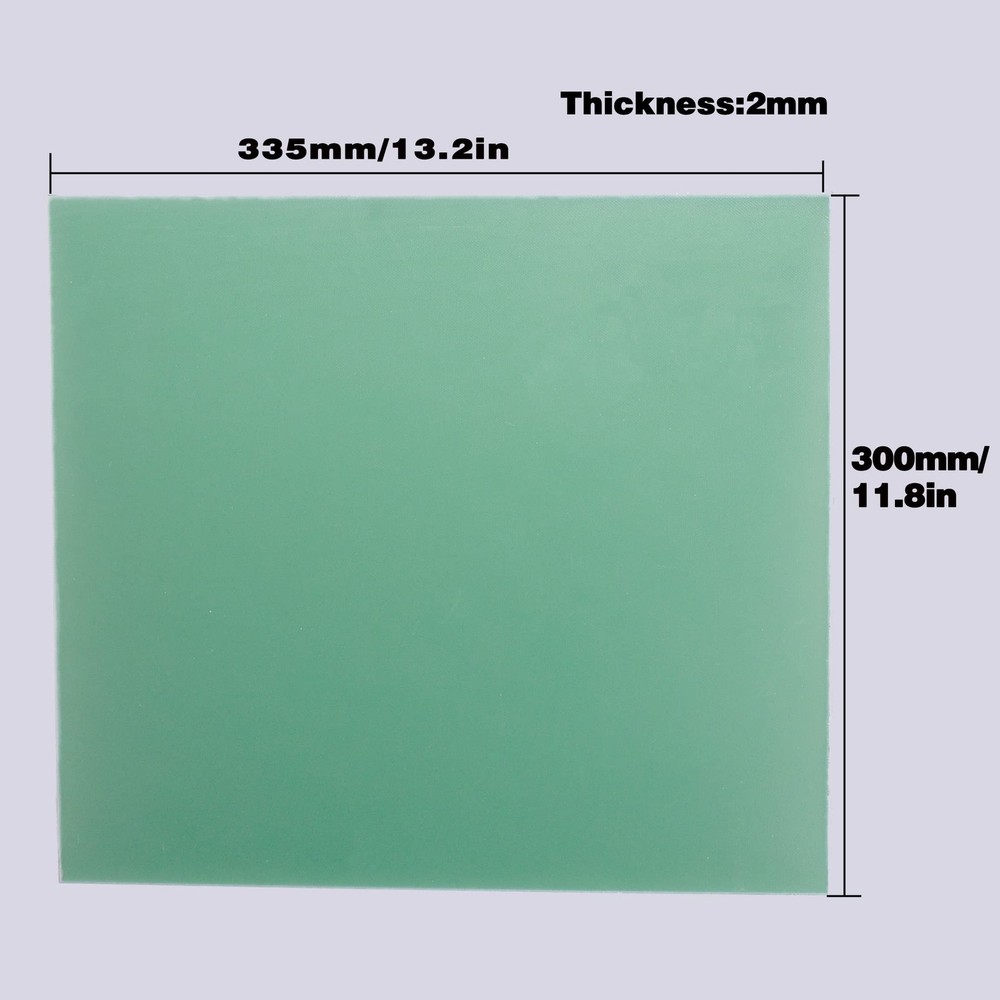 FR4 Epoxy-Sheet Resin Glass-Fiber Insulation-Plate - 335X300X2.0MM Green Product Details Size: 335×300×2mm Number of Items: 1 Brand: Ciwenkai MPN: 20221017-2huan EAN: 9331908270839 UPC: Does not apply Material: fiberglass Brand: Ciwenkai Item dimensions L x W x H: 13 x 11 x 0.4 inches Color: Green Shape: Rectangular Item Thickness: 0.08 Inches Item Form: Sheet Number of Items: 1 Manufacturer: Ciwenkai Item Weight: 15.2 ounces Product Dimensions: 13 x 11 x 0.4 inches Item model number: 20221017-2huan Material Type: fiberglass Size: 335×300×2mm Manufacturer Part Number: 20221017-2huan Date First Available: October 17, 2022 1. FR-4 epoxy board has the characteristics of insulation, flame retardant, high temperature resistance, and strong physical properties 2. It is an indispensable main material or auxiliary material for high -end motor electrical appliances, wind power, hydropower, rail transit, aviation navigation, mold molds, electronics, intelligent physiotherapy and other industries. 3. You can injection mold molding machine, motor, PCB, ICT treatment table grinding pad, high -performance electronic insulation, FPC reinforcement board, carbon film, insulation pad . 4. Good wetness and solidification 5. Size: 1/13 "Thick x 11.8" Wide x 13.2 "Long