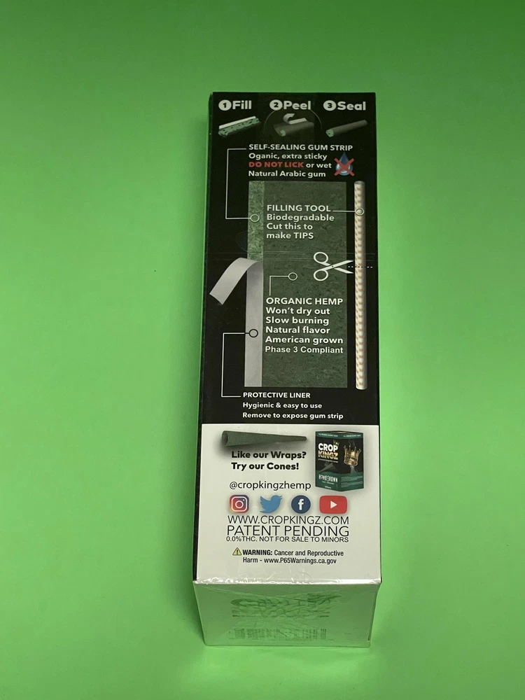 Free Gifts 🎁 with Purchase Fast shipping WE USUALLY PACK & SHIP THE SAME OR NEXT BUSINESS DAY Tobacco free Contains = 15 Sealed Packs 2 Organic Premium Wraps per pack Total = 30 Organic Premium Wraps Crop Kingz 👑 Thug Passion Passion Fruit Liquor 🥃 + Champagne 🍾 Made in USA 🇺🇸 New!!! Self-Sealing Wraps 1. Fill 2. Peel 3. Seal Organic Hemp Won’t dry out Slow Burning 🔥 Natural Flavor American 🇺🇸 grown Phase 3 Compliant Self-Sealing Gum Strip Organic, extra sticky DO NOT LICK 👅 or wet 💧 Natural Arabic gum Filling Tool Biodegradable Cut ✂️ to make tips Protective Liner Hygienic & easy to use Remove to expose gum strip